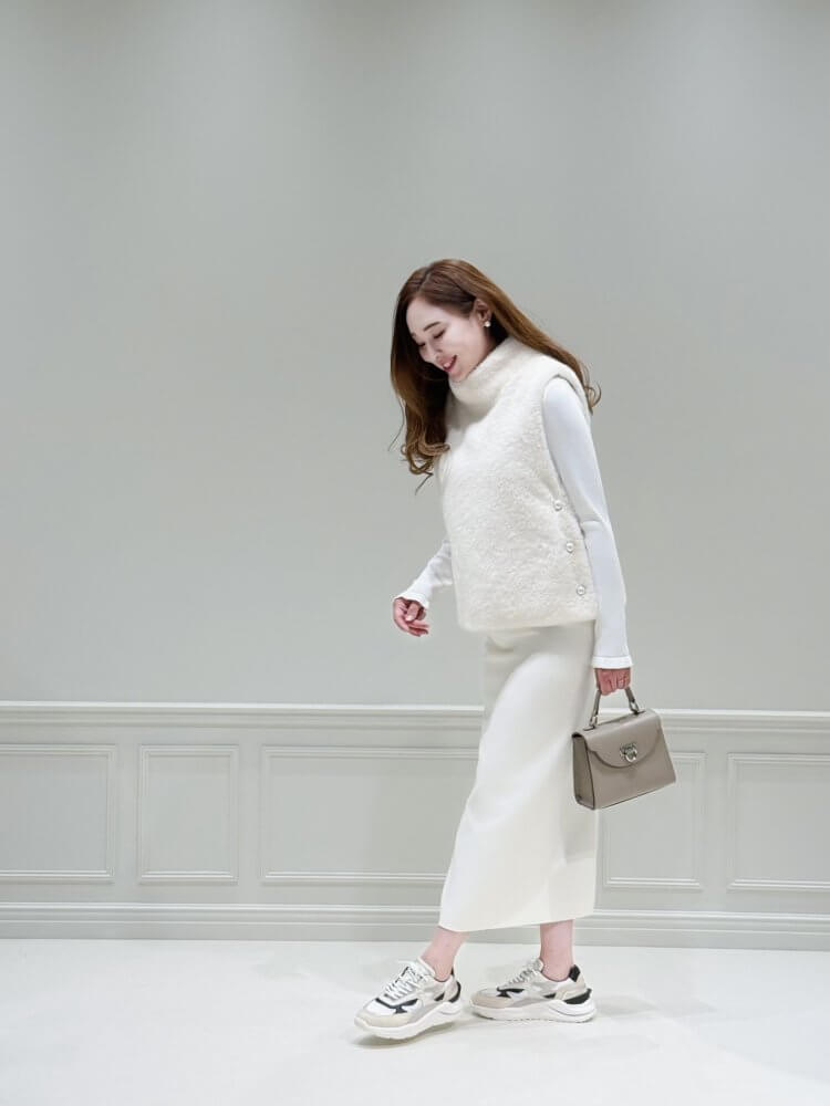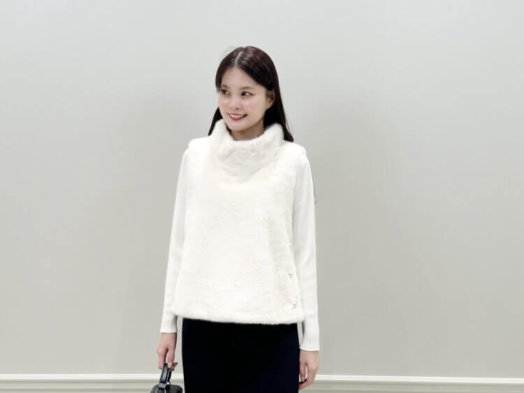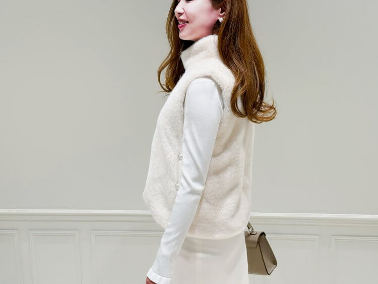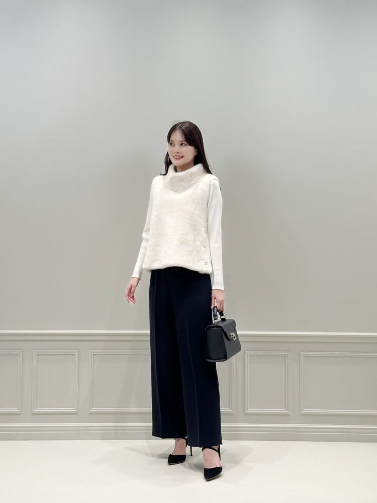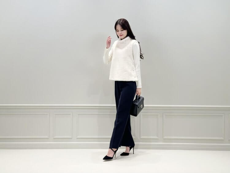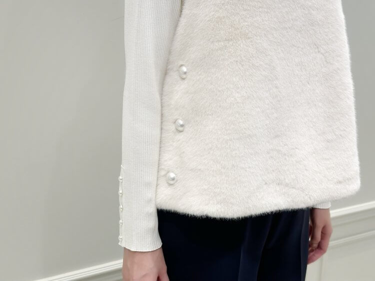 【もうチェックした?】ふんわりファー×きらめくパールが映える、パンツ合わせの最旬ジレコーデ!