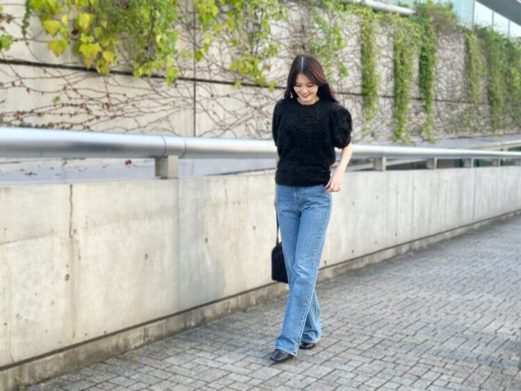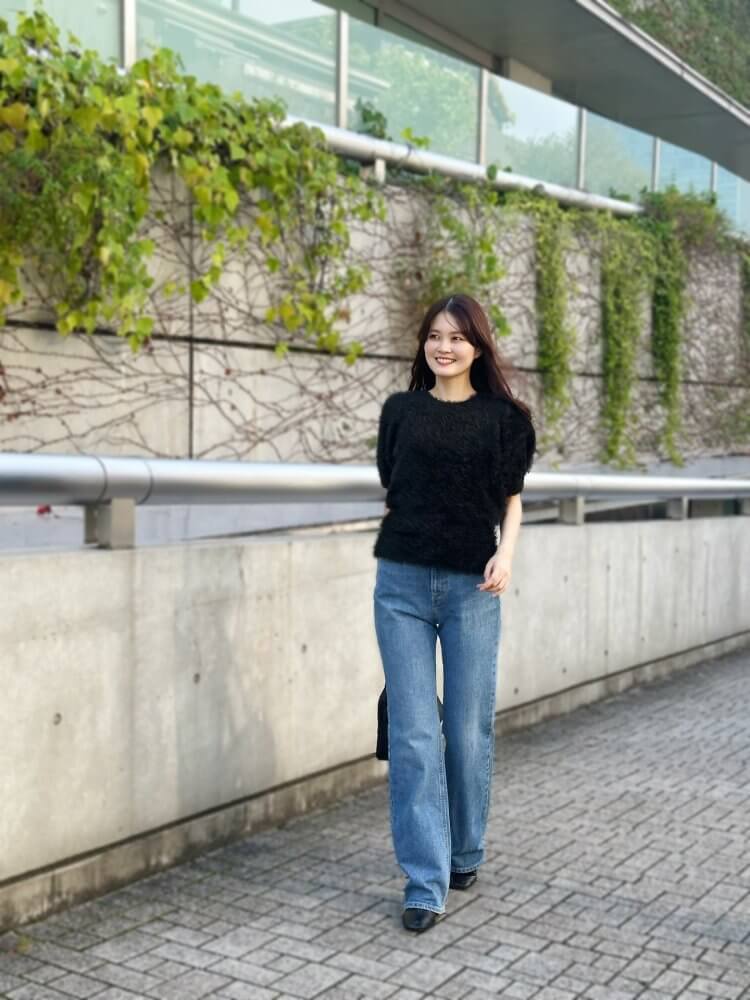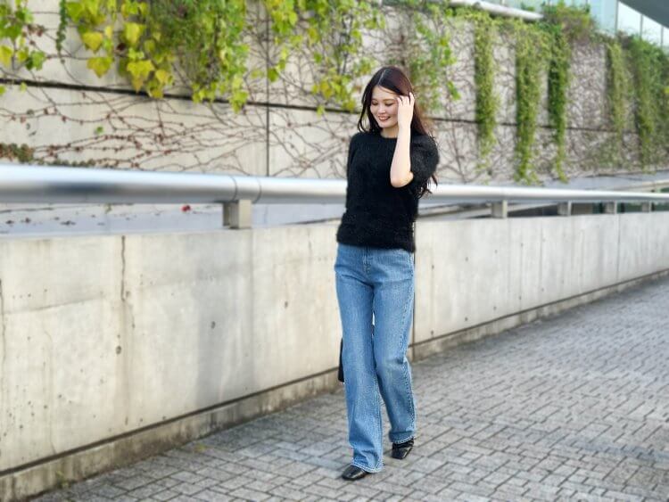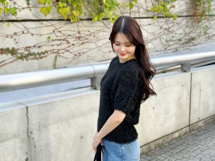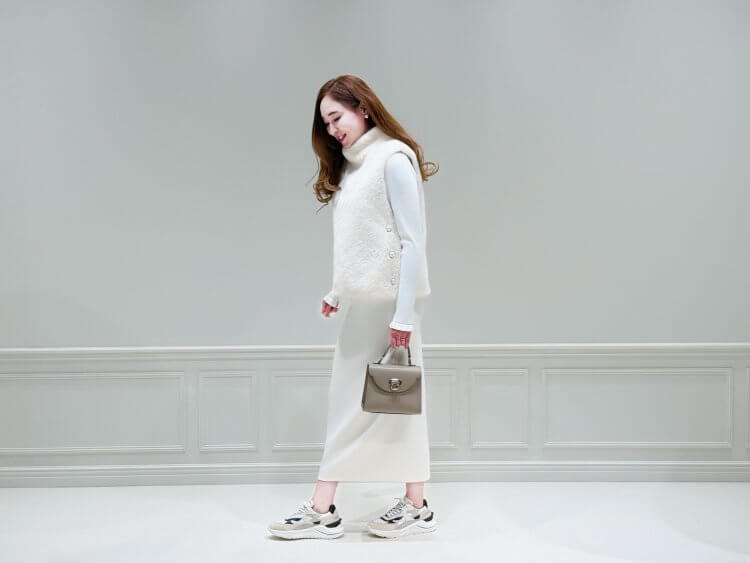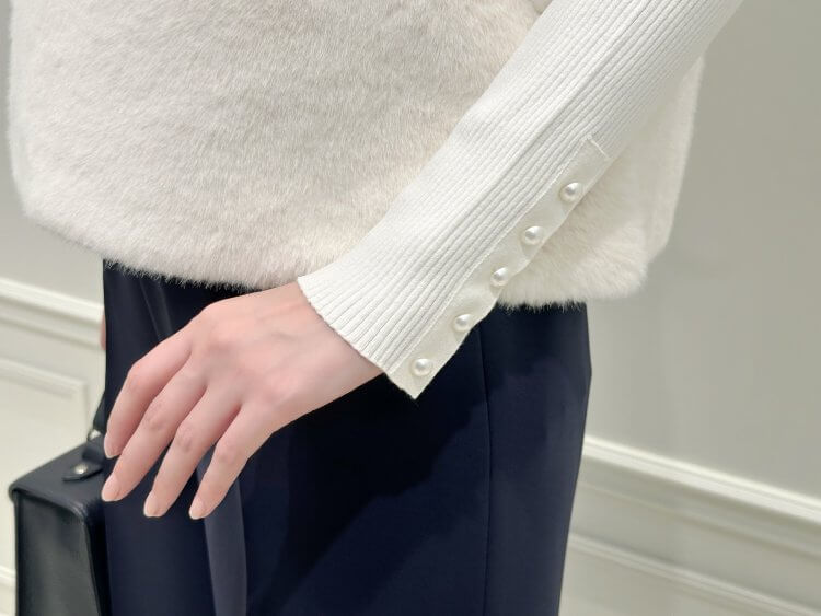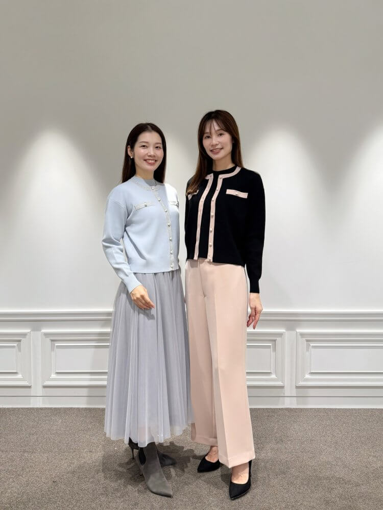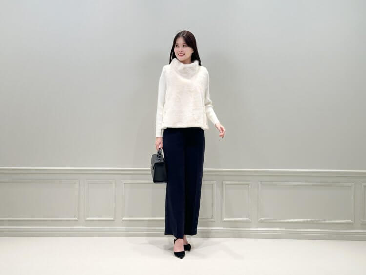ボウタイニットを取り入れた大人エレガントなモノトーンコーデ@ジェイアール名古屋高島屋店