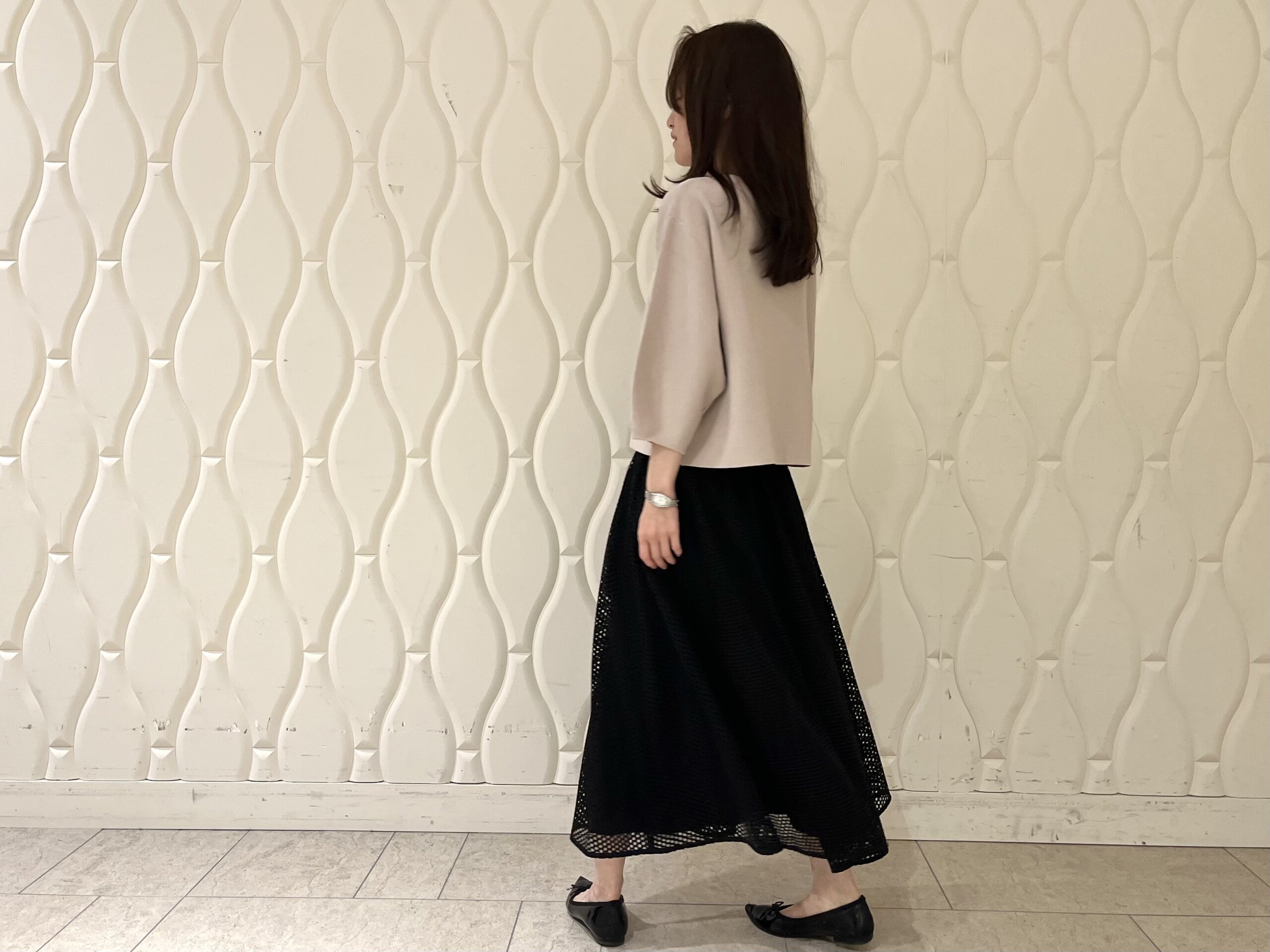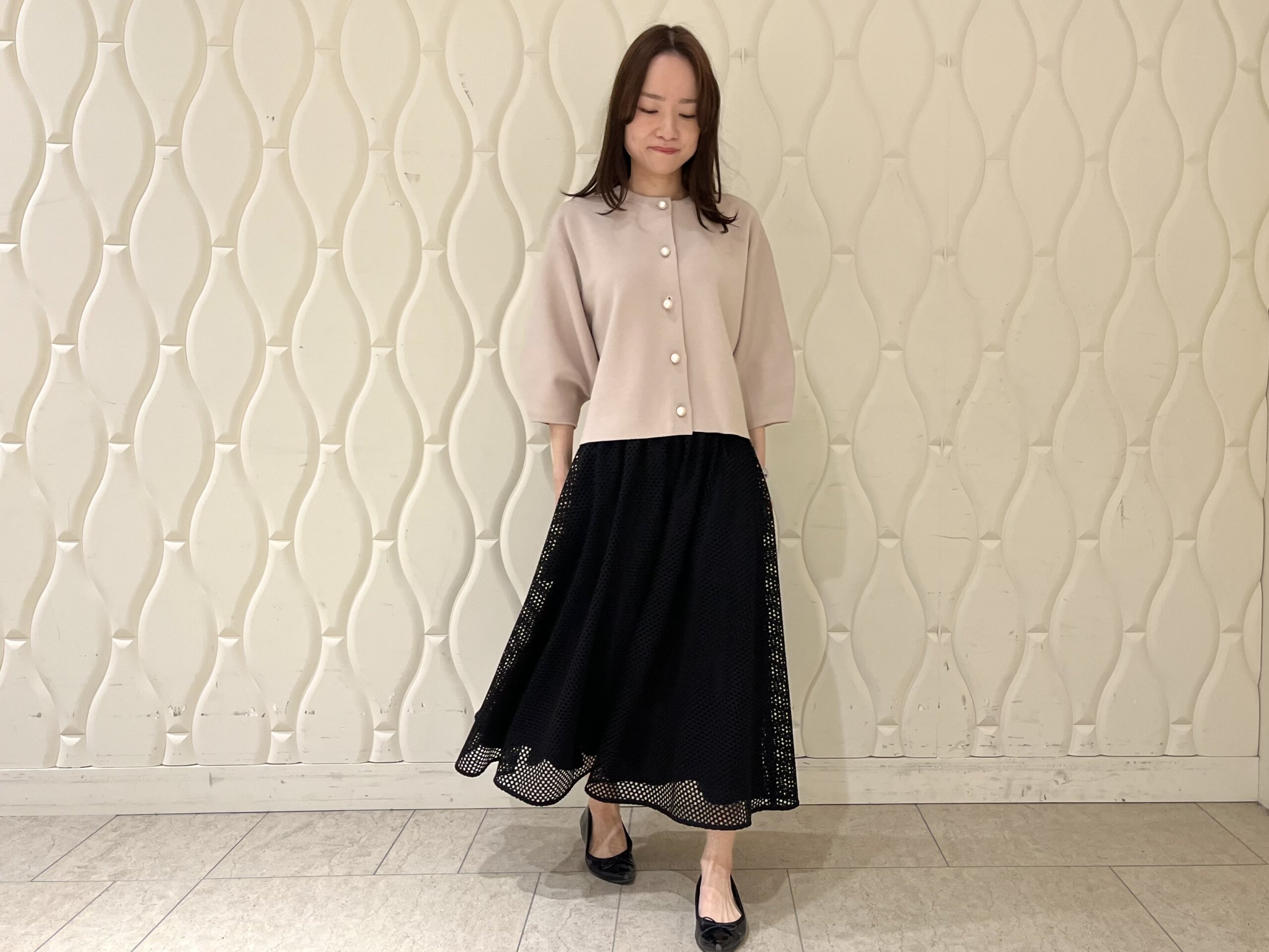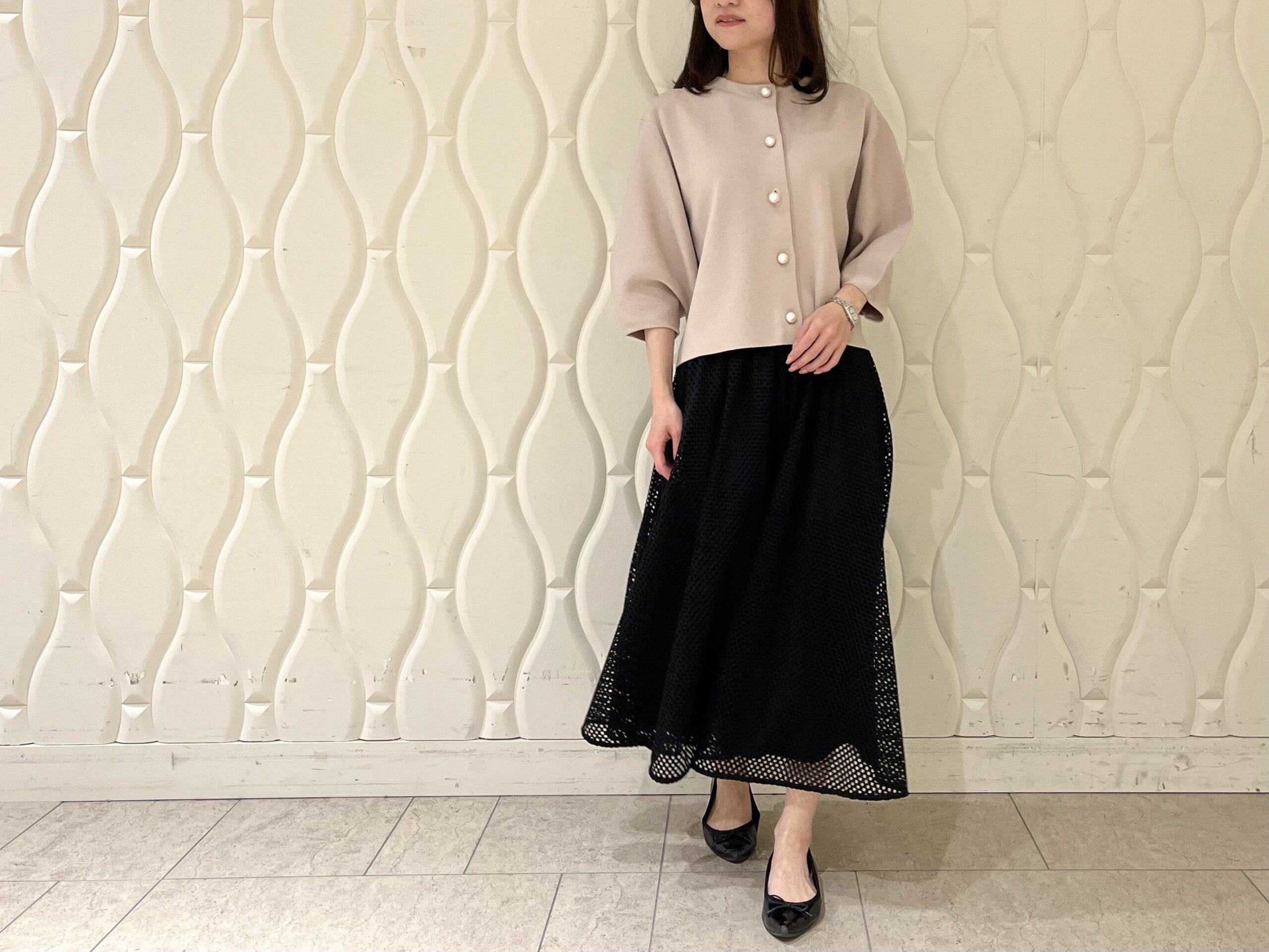 【低身長/小柄のスタイルアップ術】春の軽やかさを一枚で。メッシュレーススカートの洗練コーデ