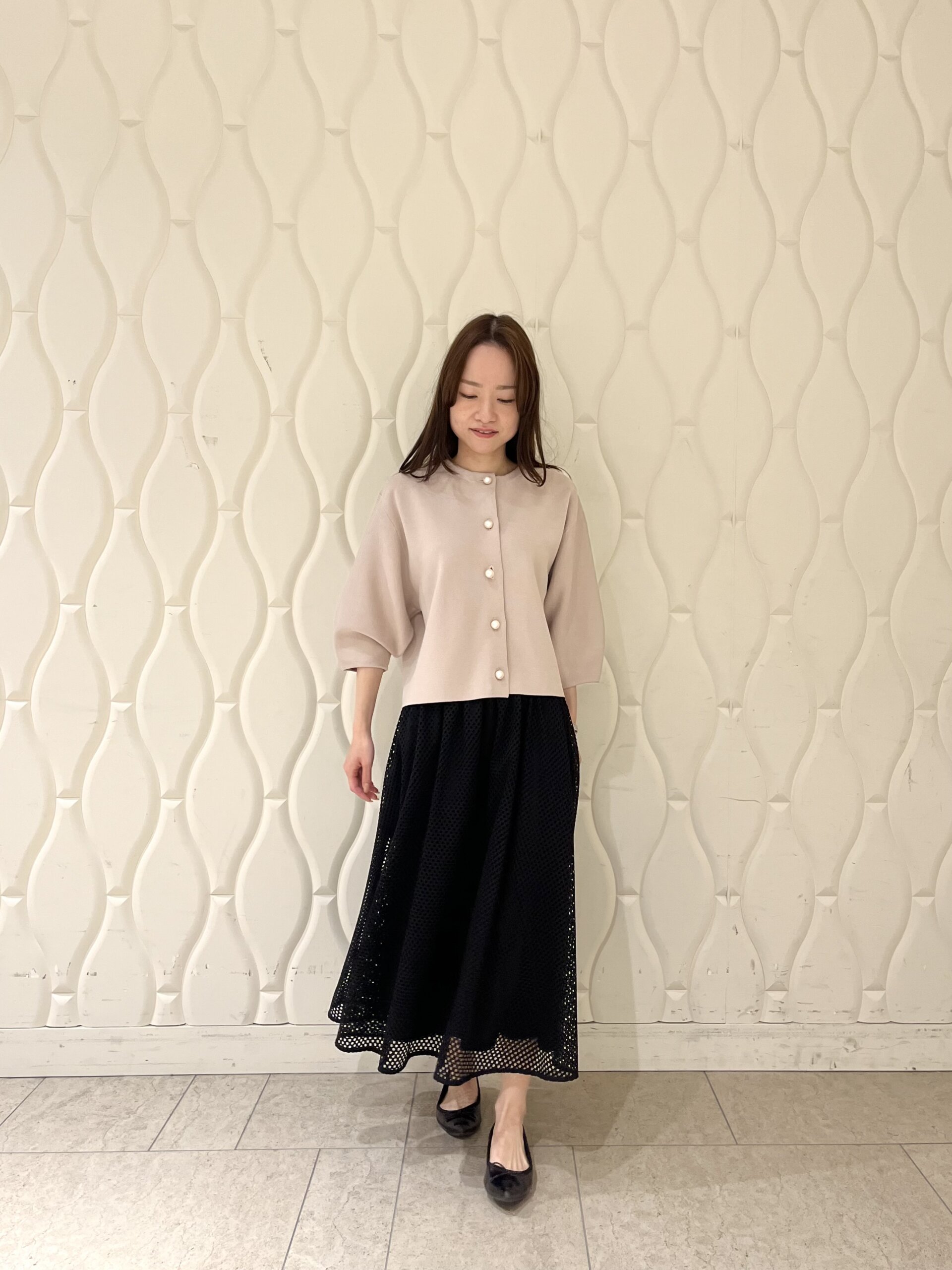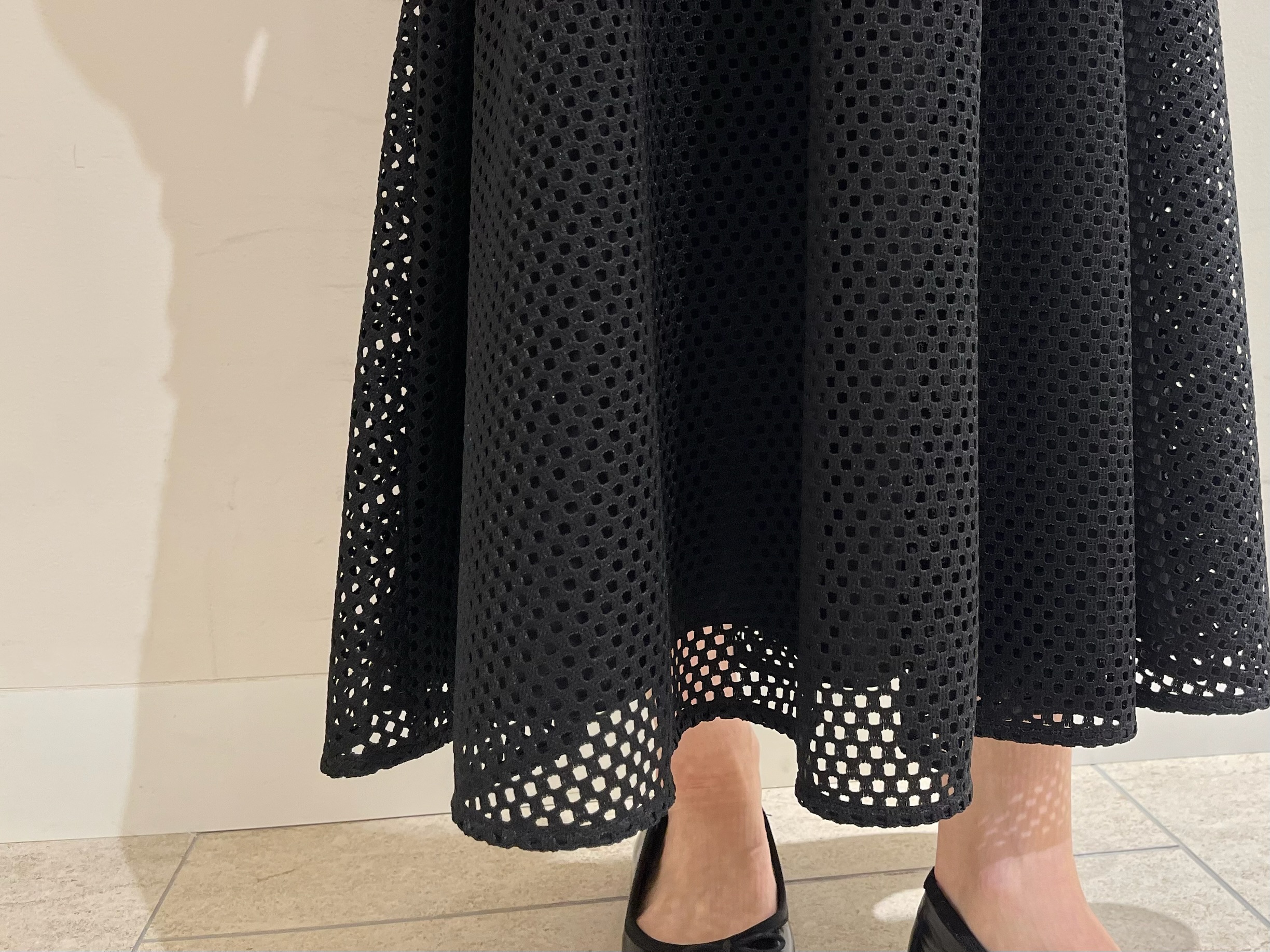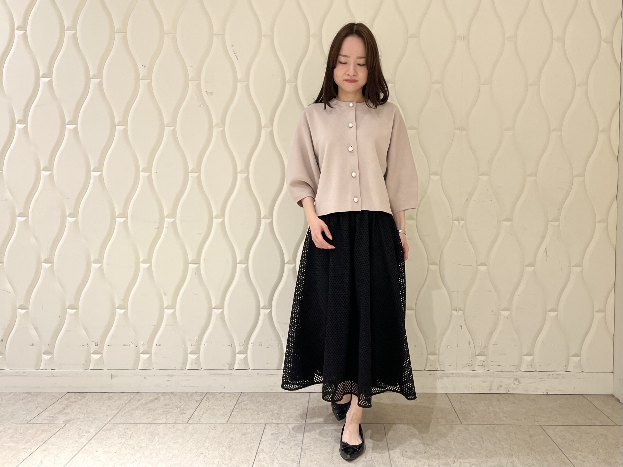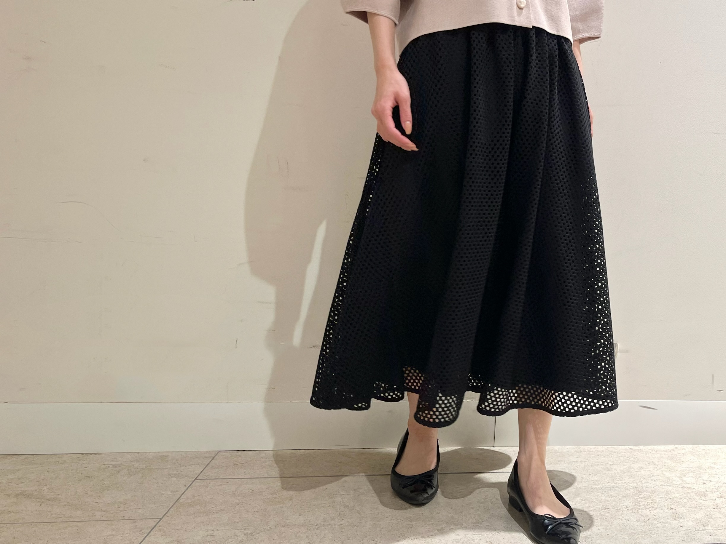 【低身長/小柄のスタイルアップ術】春の軽やかさを一枚で。メッシュレーススカートの洗練コーデ