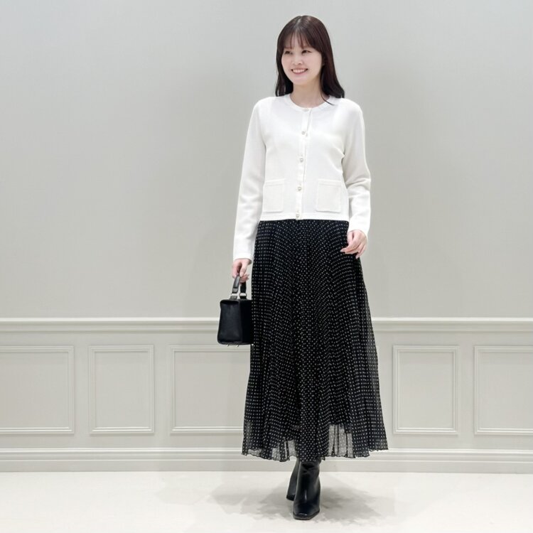 コーディネートをエレガントに仕上げてくれるだけでなく、上半身に視線を集めるデザインの為、スタイルアップも実現。