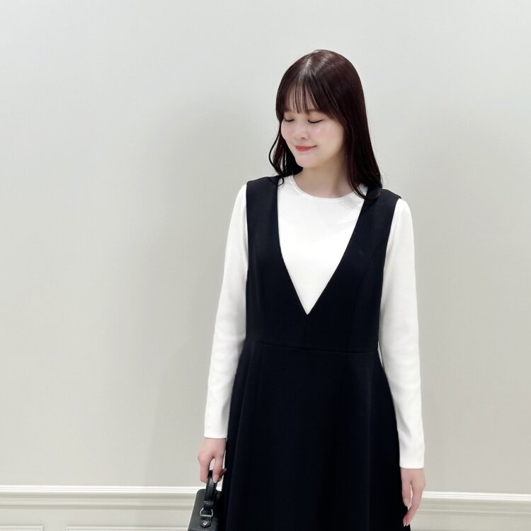 オーガンジージャガードスカートが上品さをプラスしてくれるので、全体がブラックでまとまり、きちんと感が演出できます。