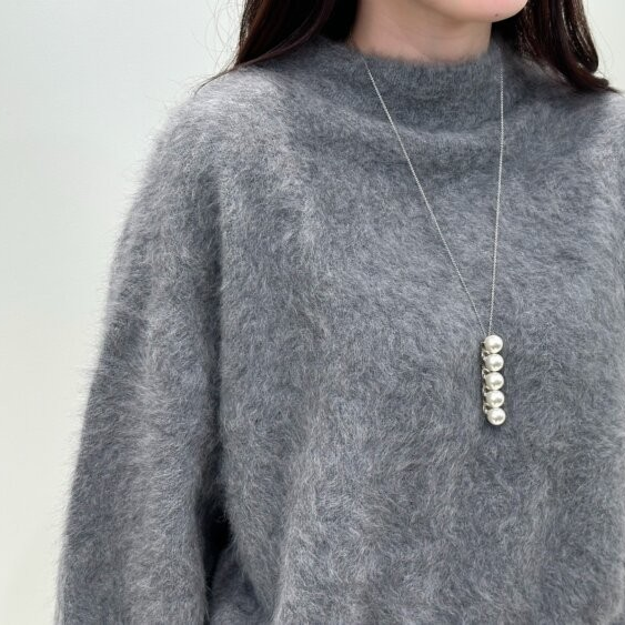 ボリューム感がありますが、大きめの襟元が視線を上げてくれるので、バランスもとりやすくなっています!