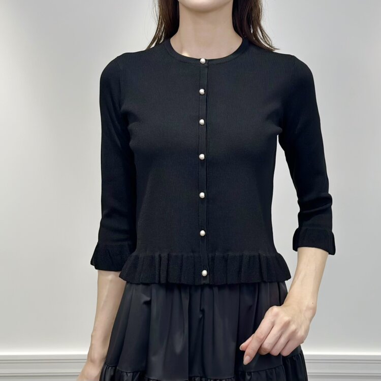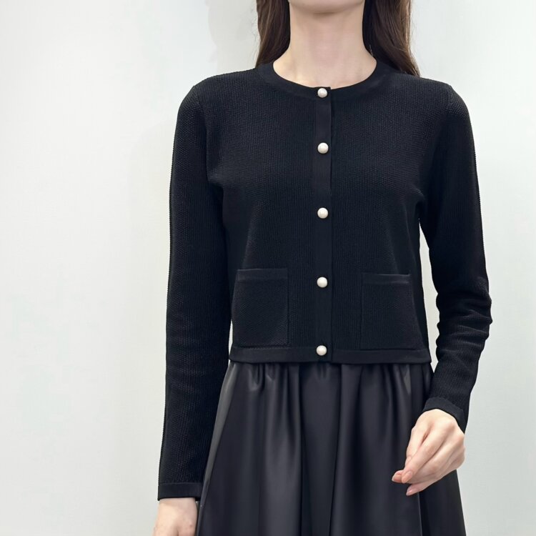 袖口のパールがポイントで、着回し力に優れた1枚です。