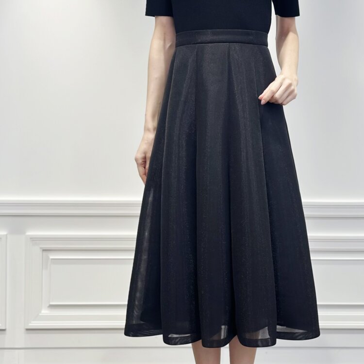 ブラックのツイード生地によく映える、大きめなパールがアクセントになったジャンパースカートが第3位に!