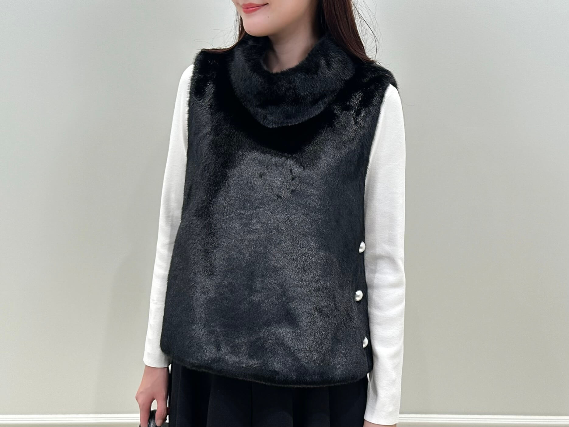 サイドパールエコファーハイネックジレ ¥39,600