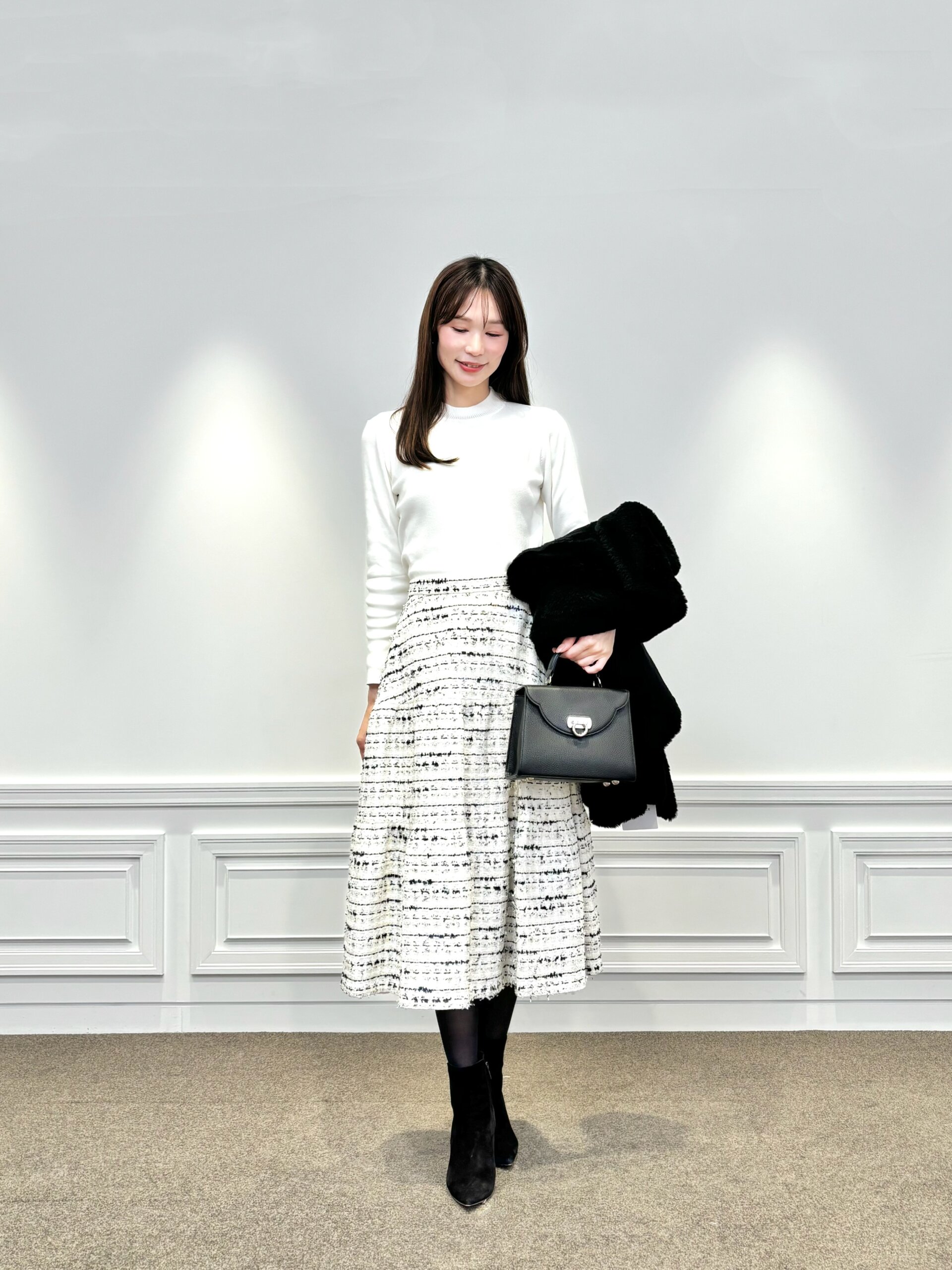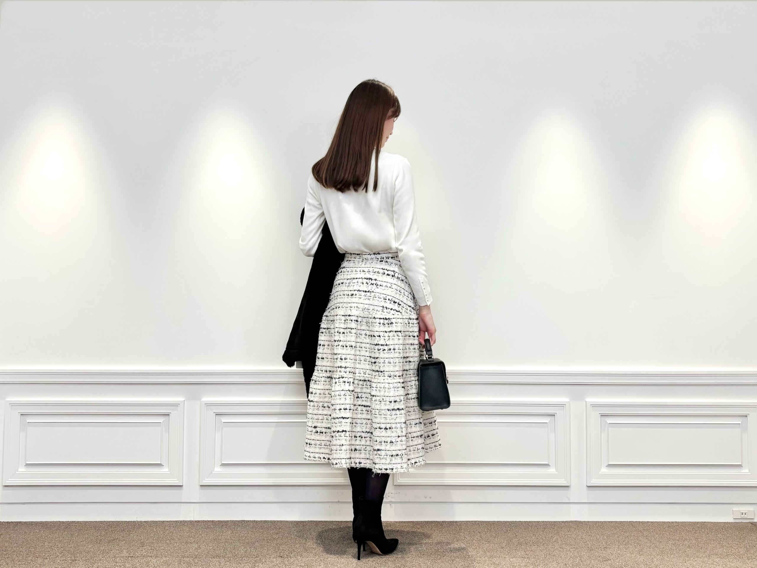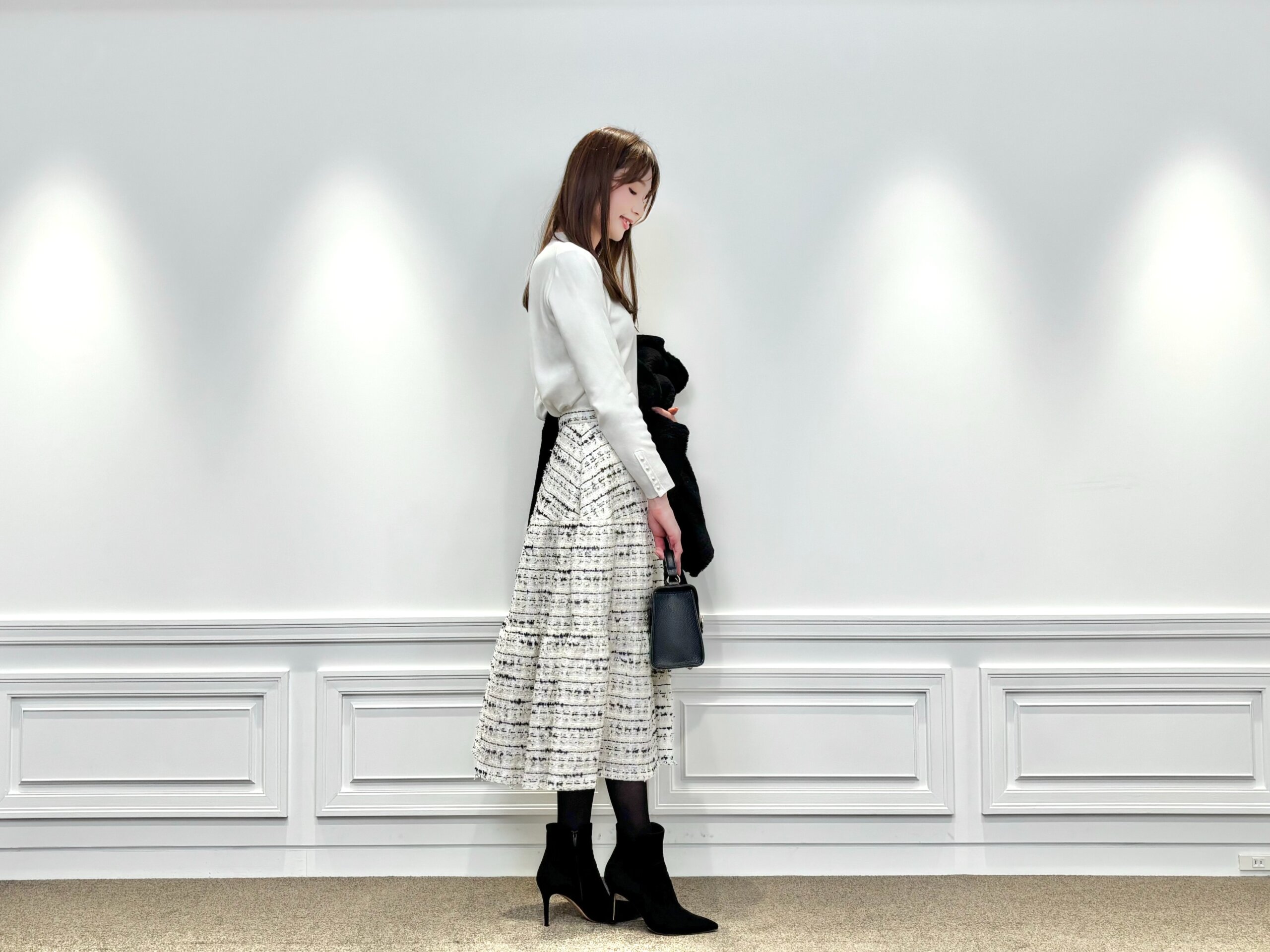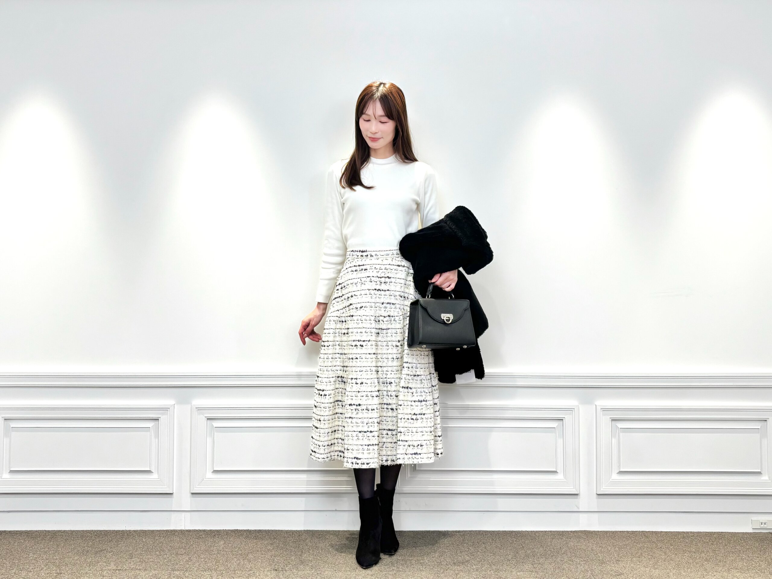 今回はホワイトツイードを主役にした、品格漂う冬のコーディネートをご紹介します!