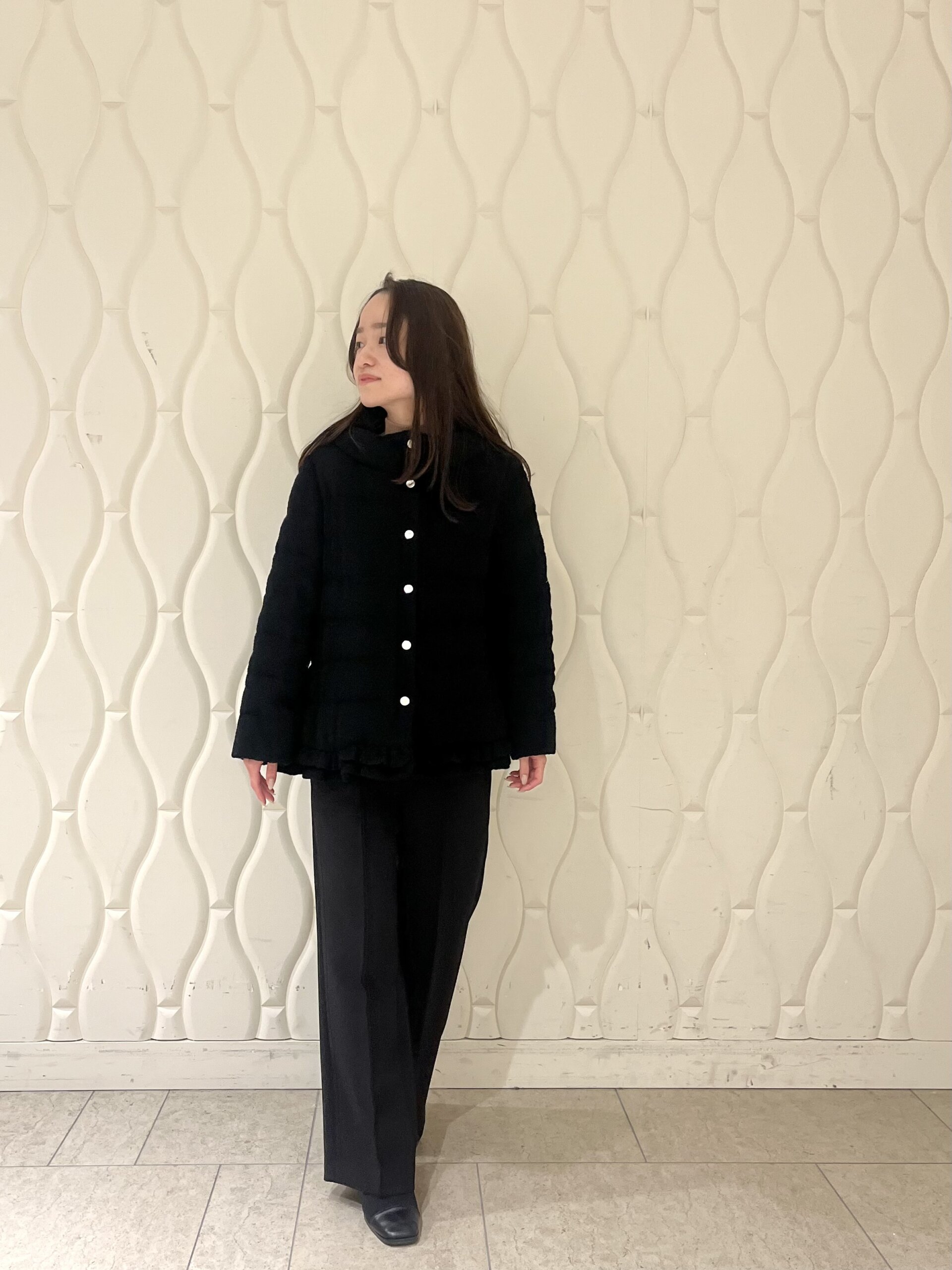冬のワードローブに加えておきたい、頼れるブラックダウンの着こなしです。