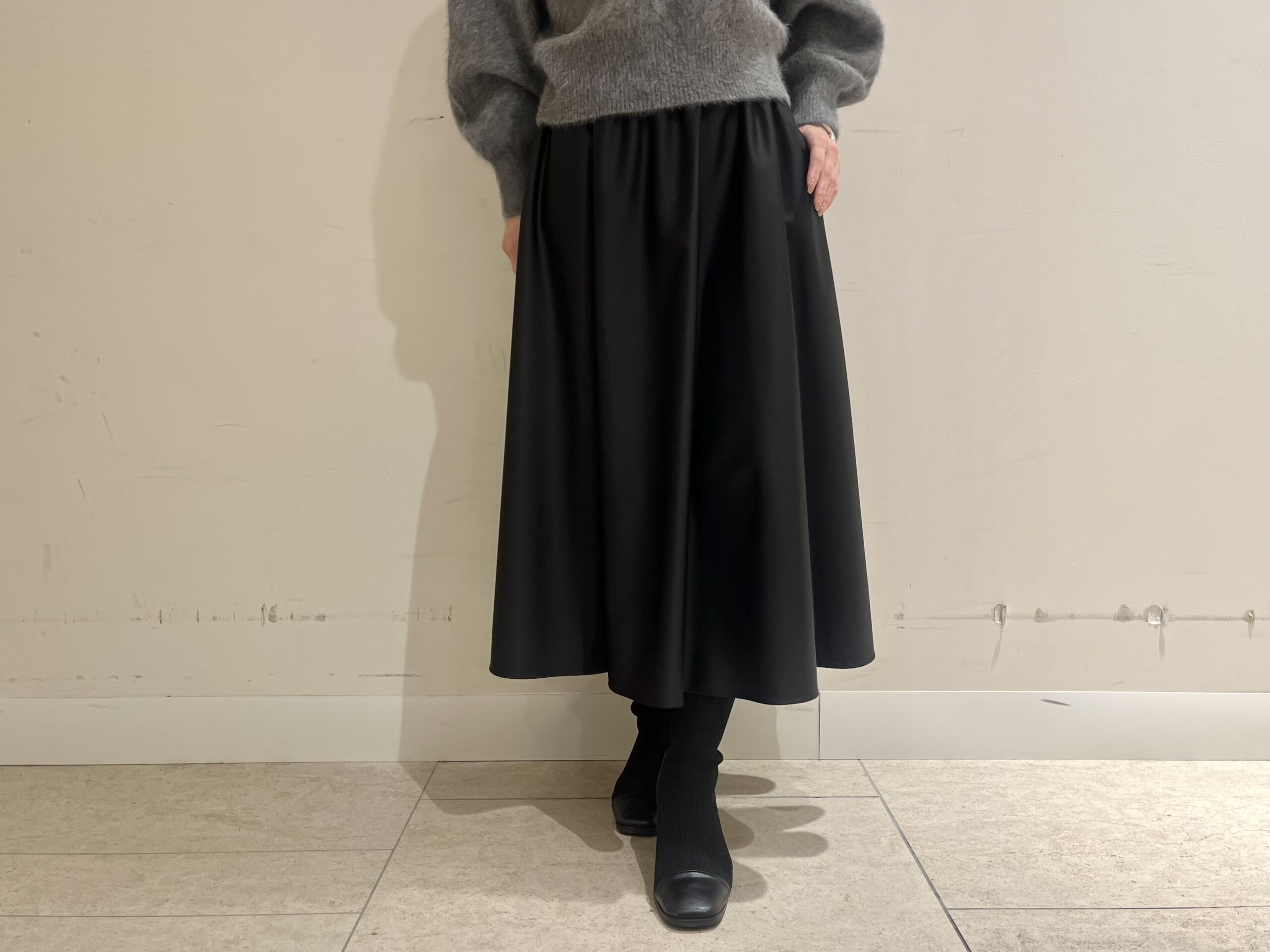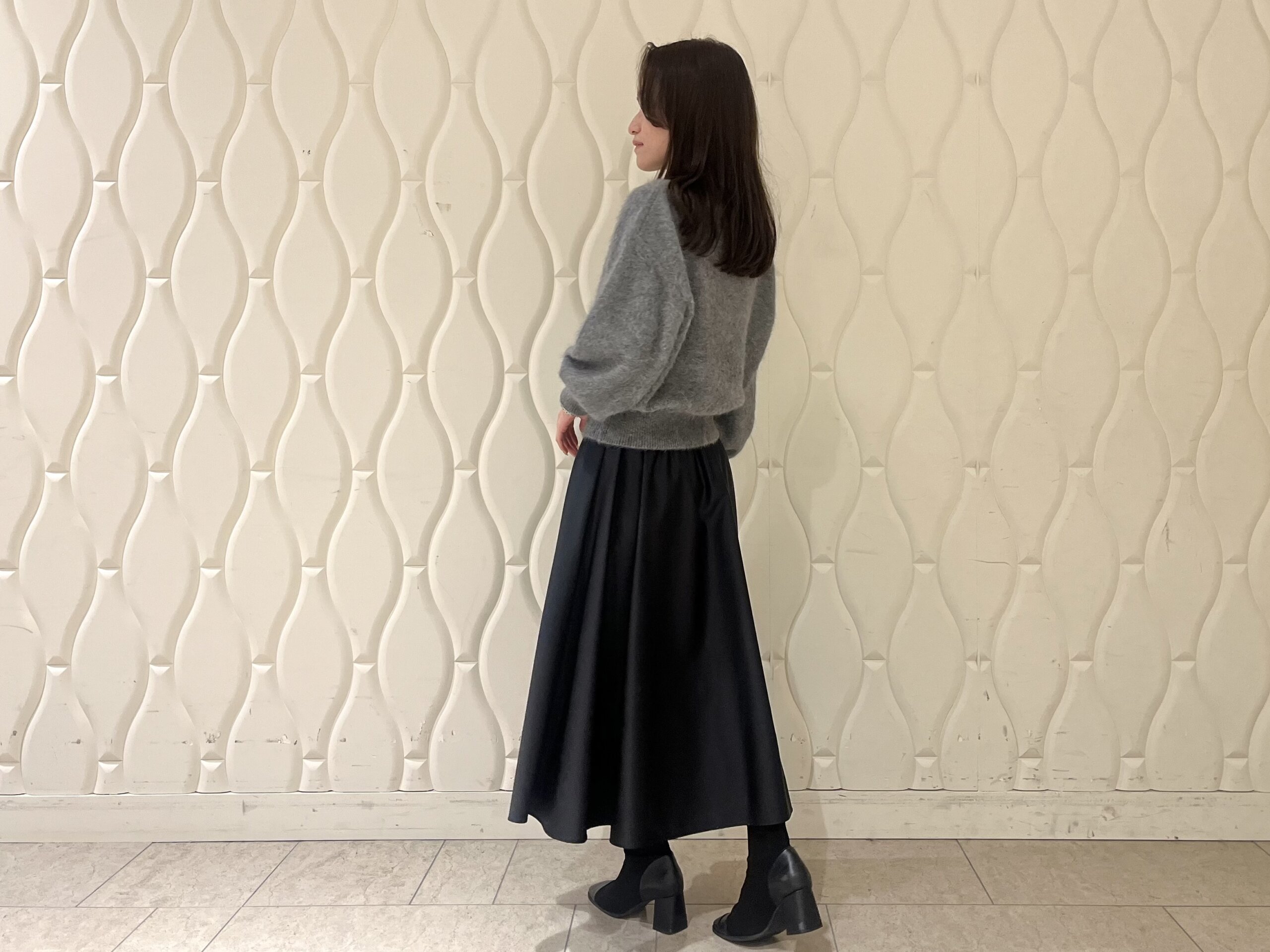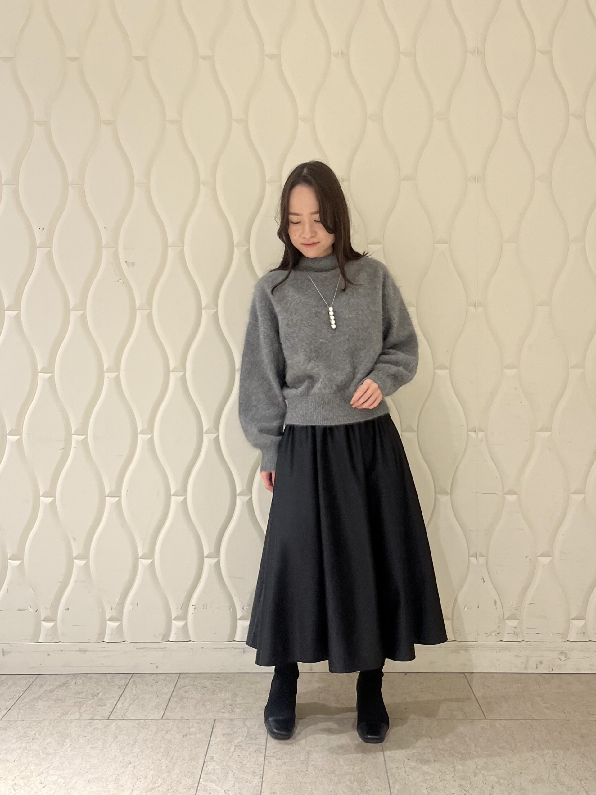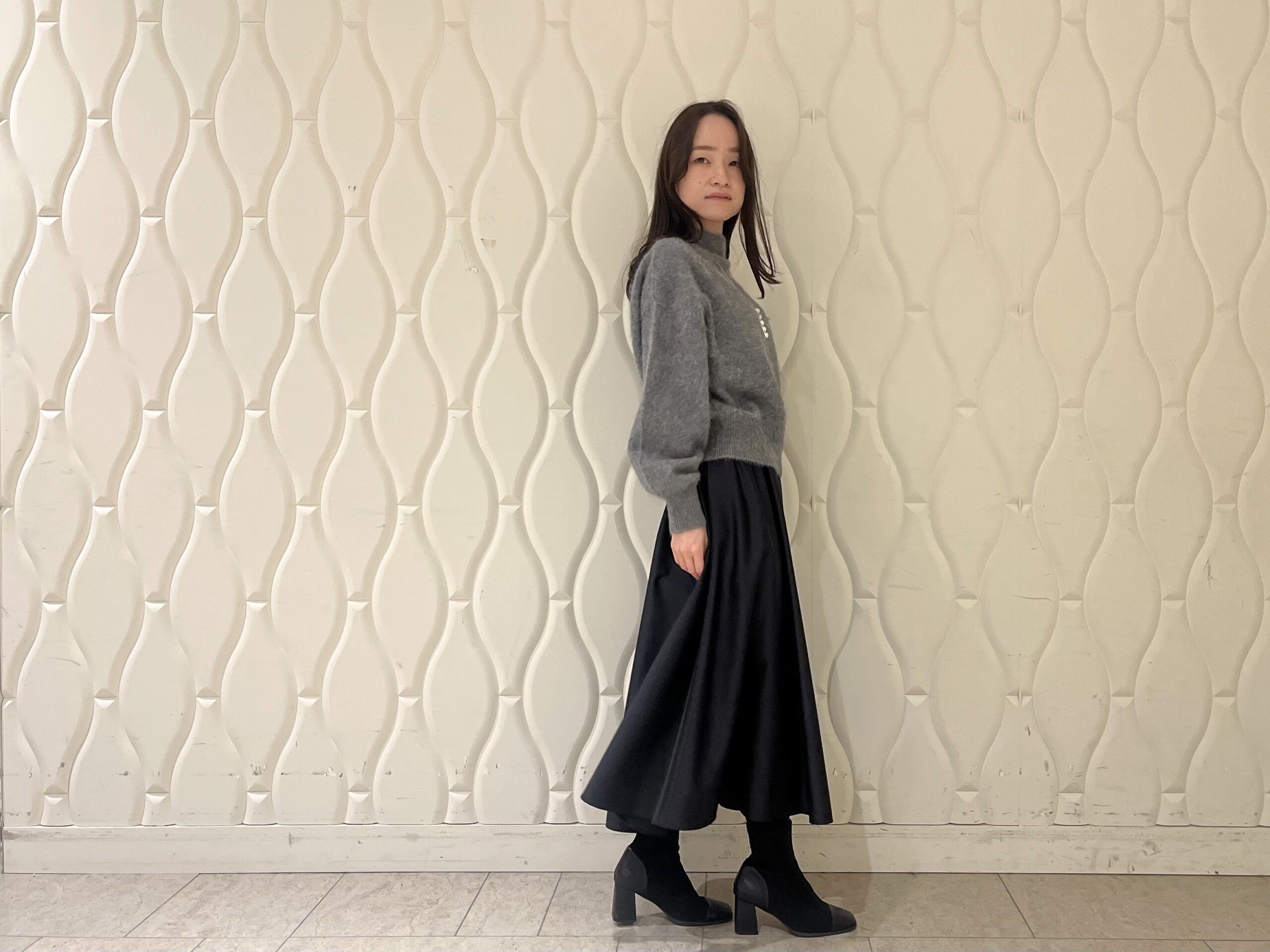 今回はフレアスカートを合わせて、ニットのコンパクトさを引き立てたスタイリングに。