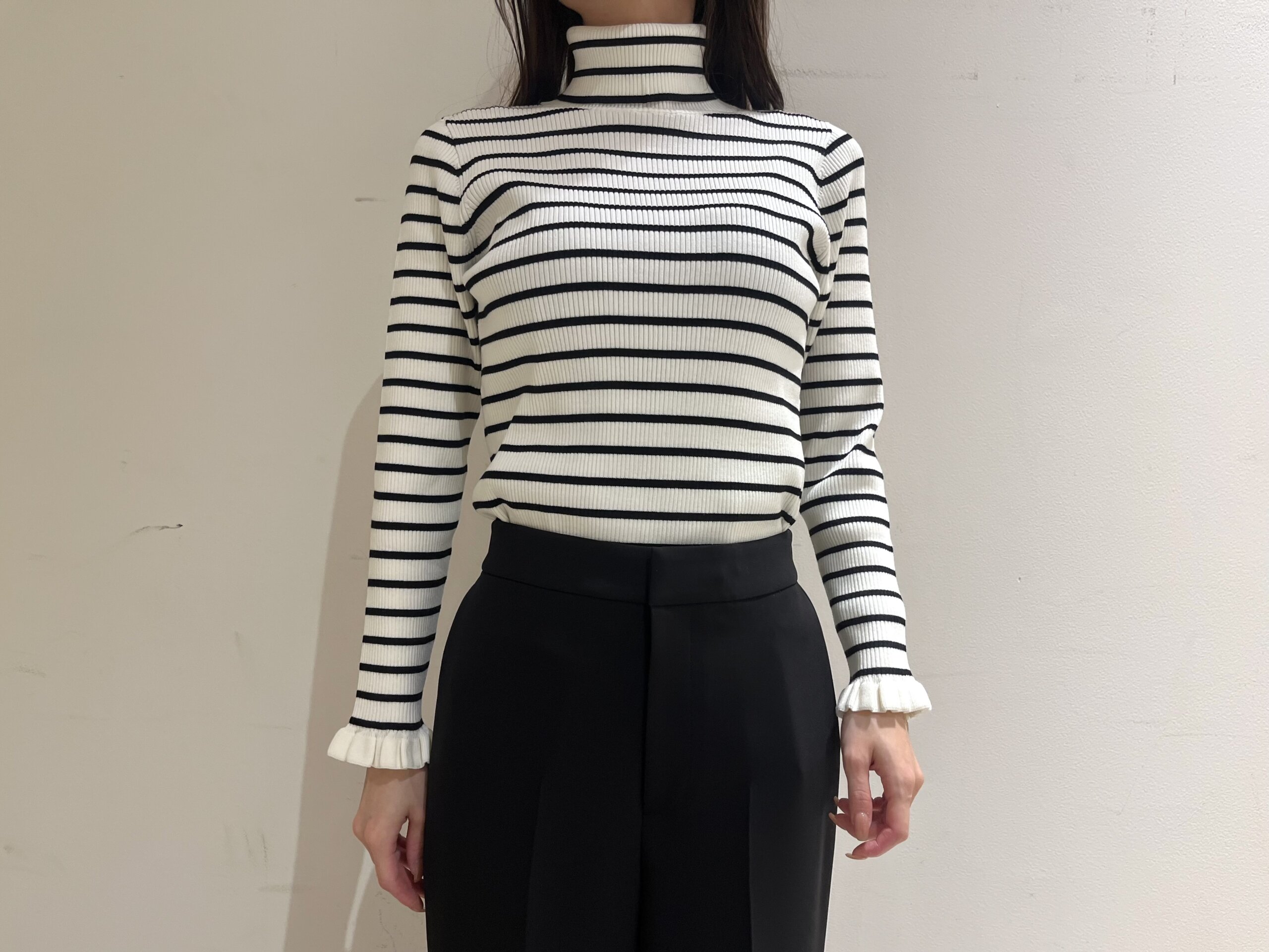 フリルボーダーリブタートルネックニットプルオーバー ¥26,400