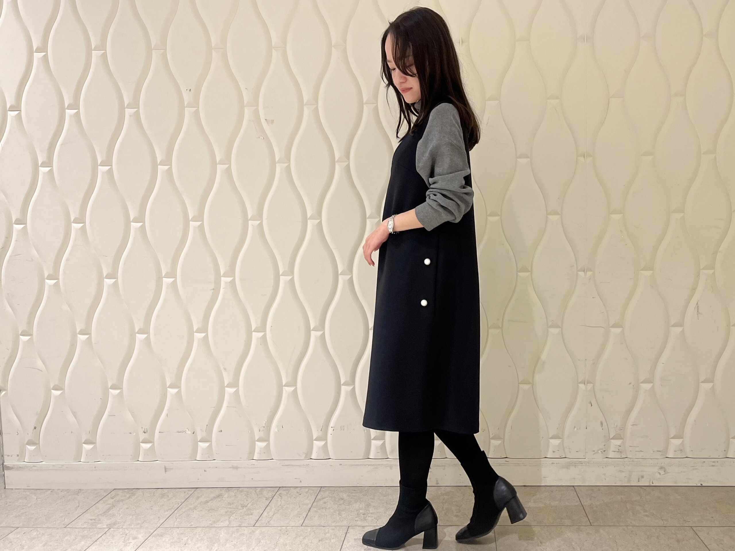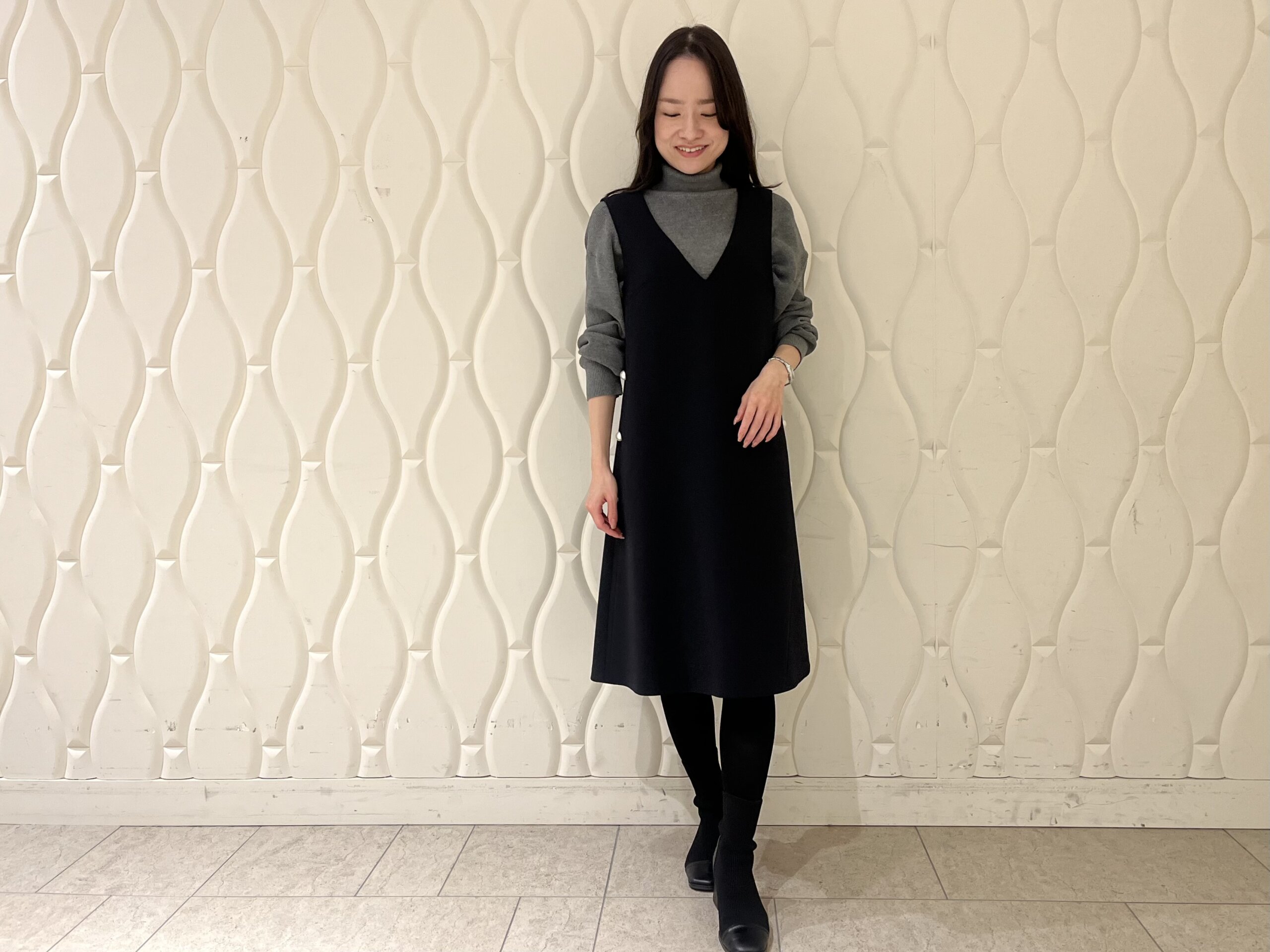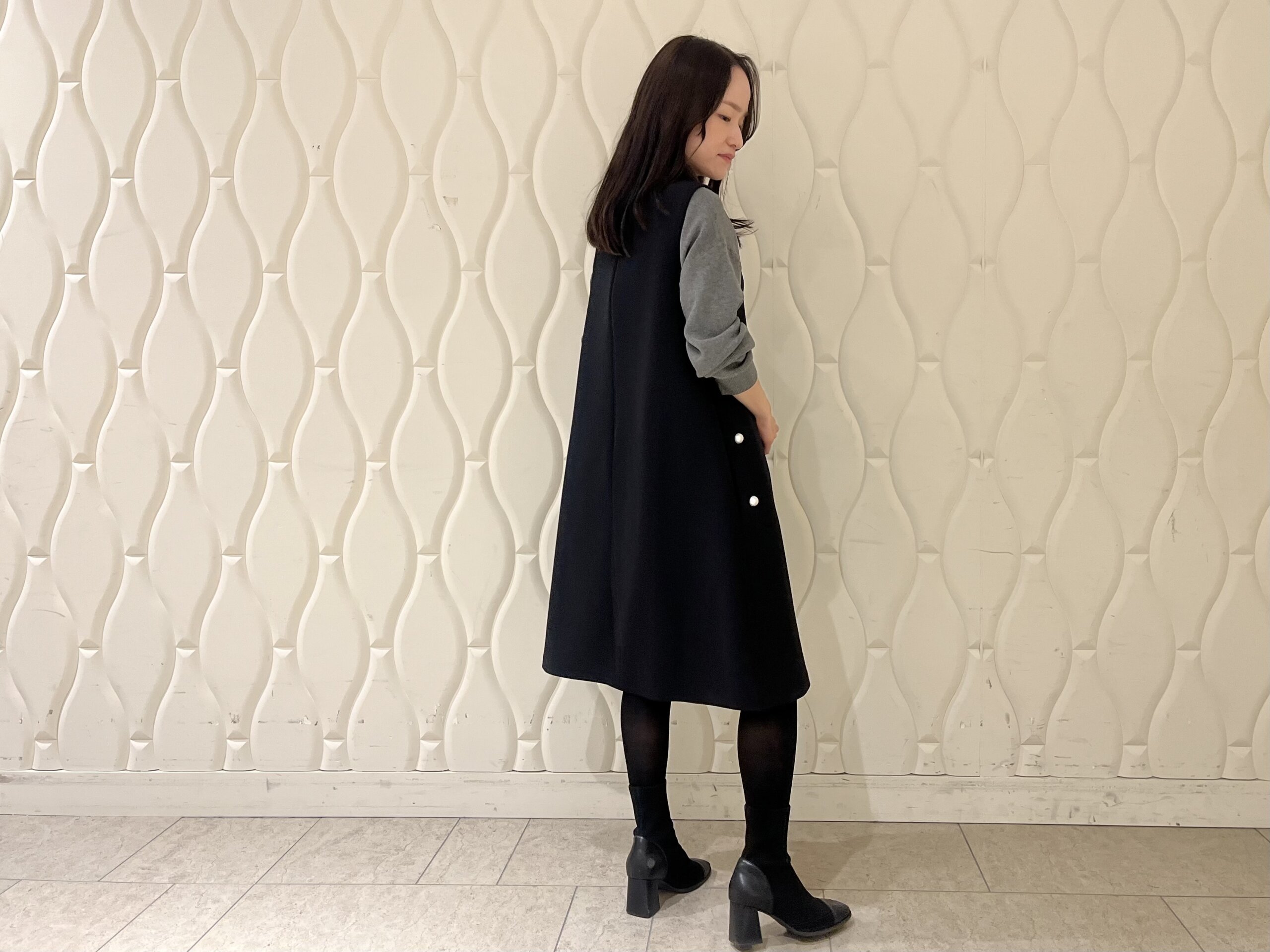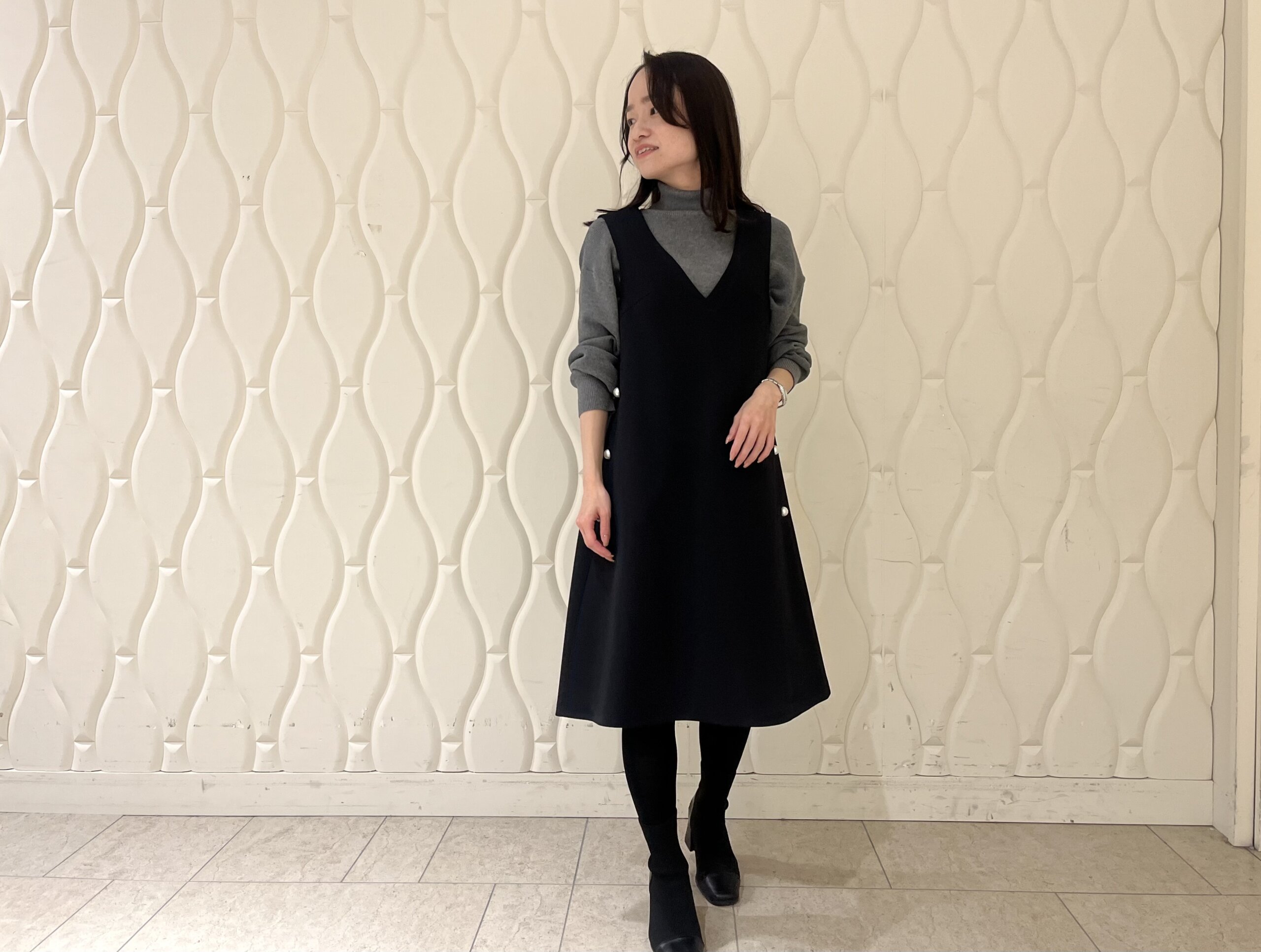 歩くたびに揺れる落ち感があり、低身長さんでも縦のラインがより強調されるのも魅力です。