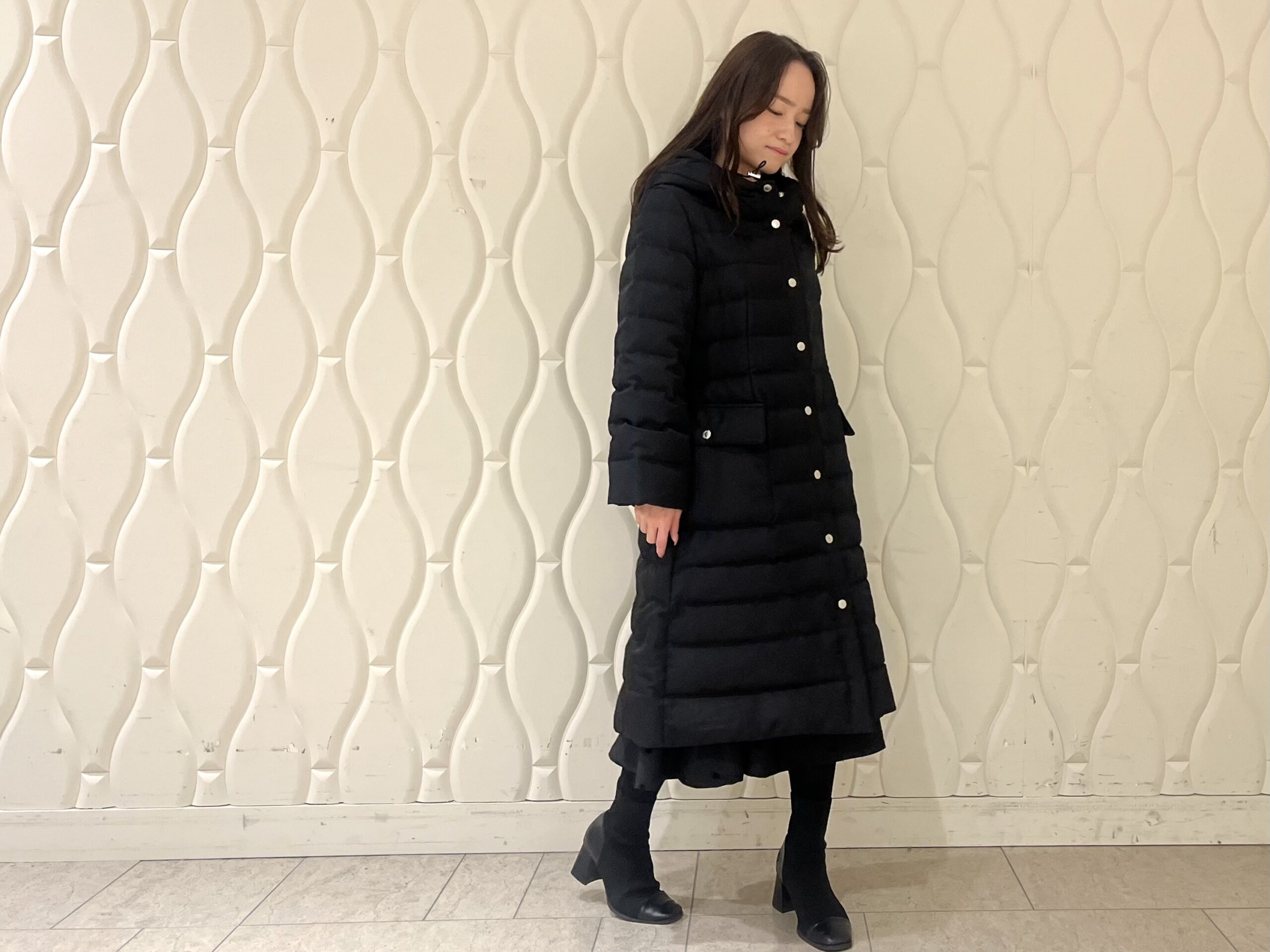 暖かさと美シルエットを両立した、低身長さんの冬の心強い味方になるロングダウンコートです。