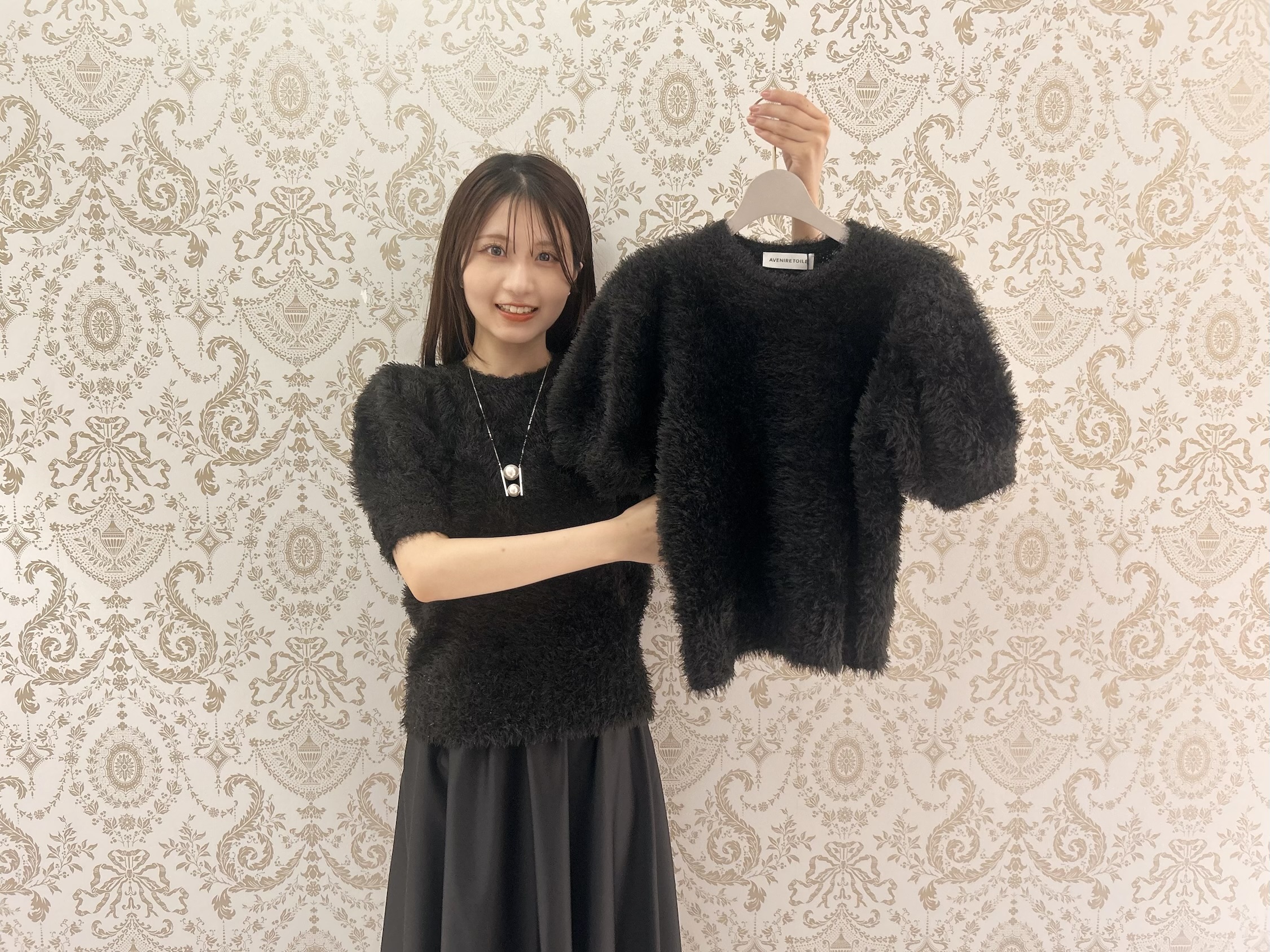 思わず触れたくなるふわふわとした生地感にきらりと光るラメが織り込まれたニット。