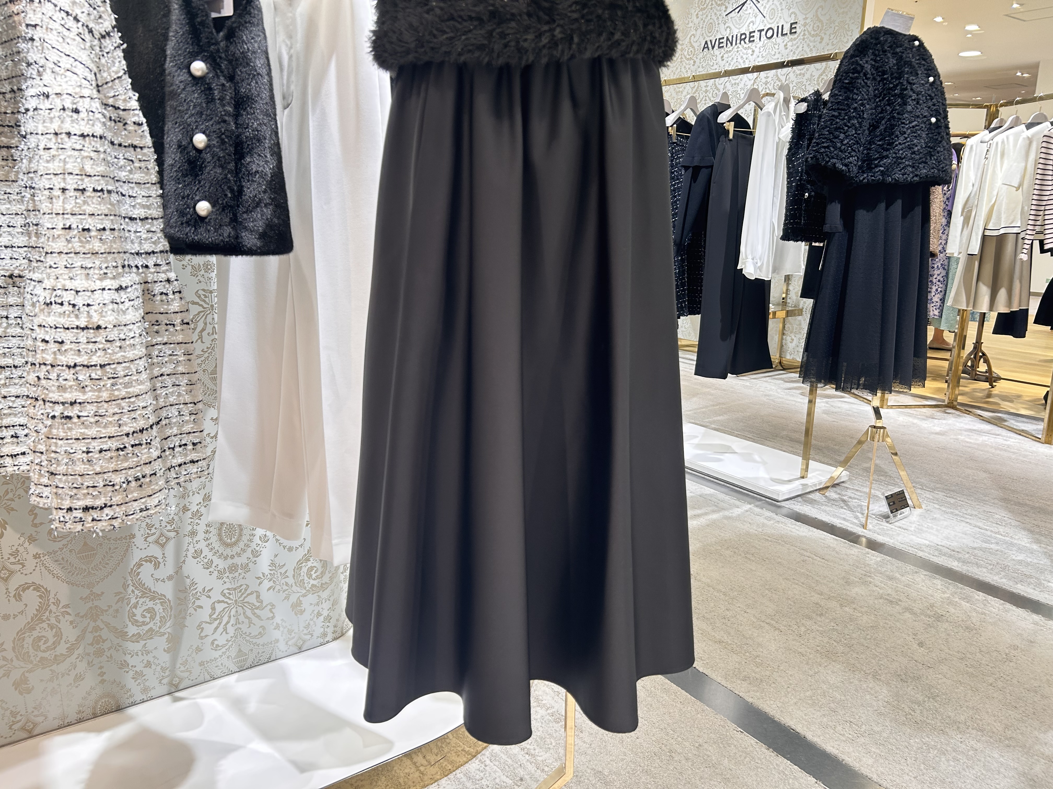 美しいフレアシルエットと、程良い光沢感が上品なフレアスカート。