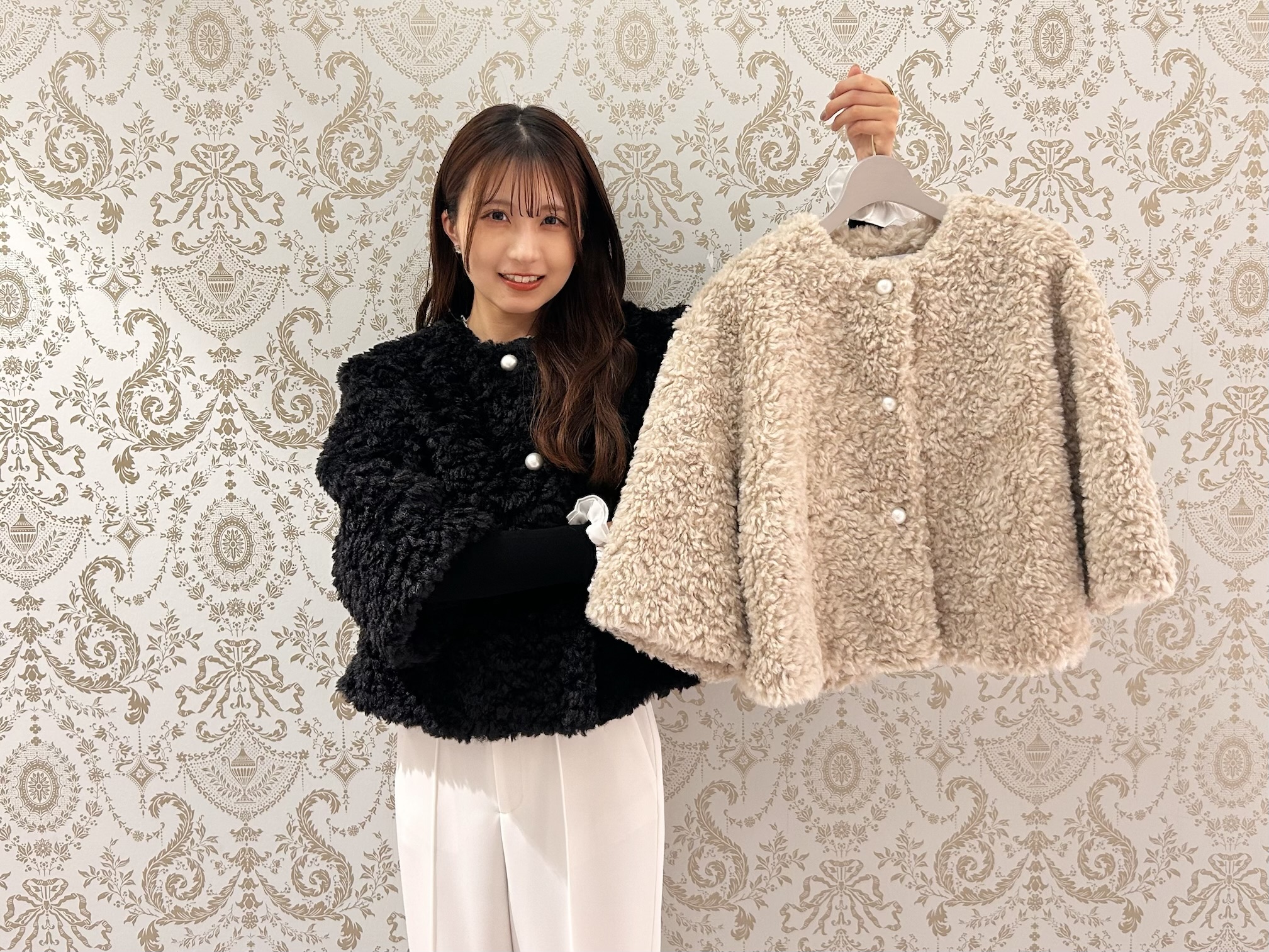 カールファーの独特なモコモコした素材感は、秋冬らしさをぐっと高め、ラグジュアリーな印象を与えてくれます。