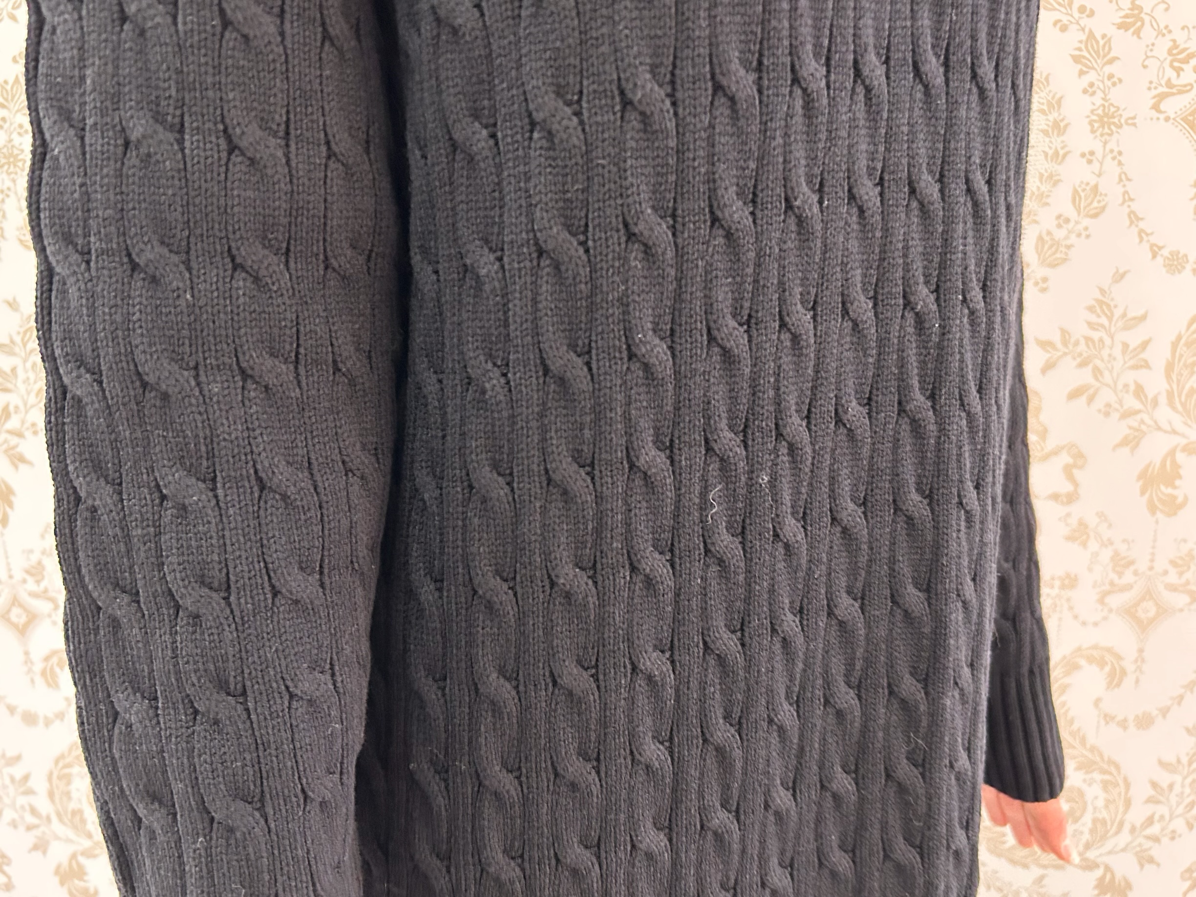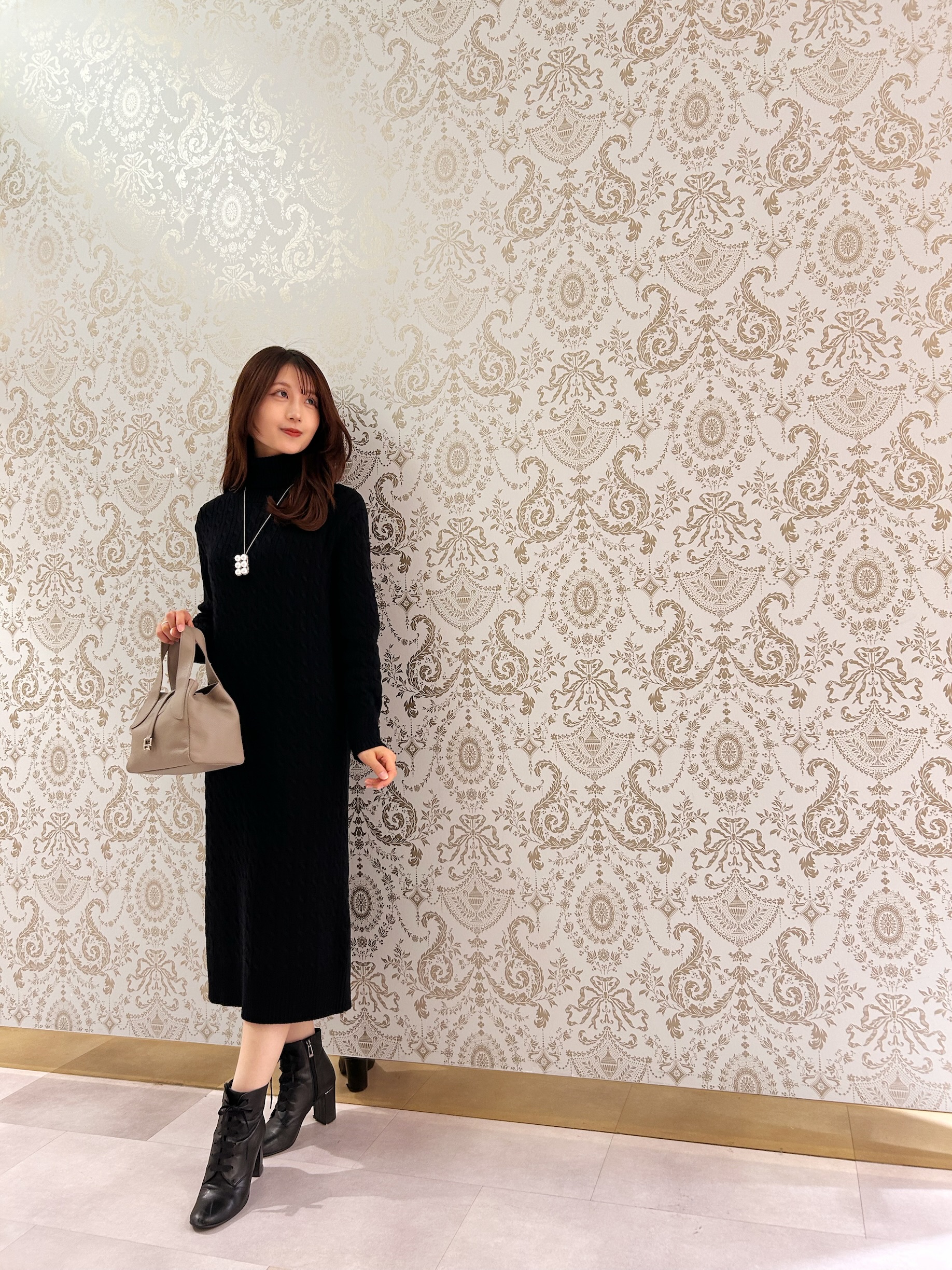 今回は、明日から店頭でもセールで展開予定のケーブル編みニットワンピースを取り入れたコーディネートのご紹介です。