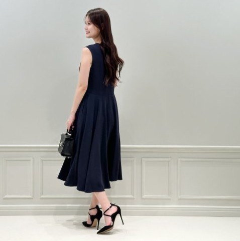 広めのショルダー幅で露出を抑えたノースリーブデザインが上品さをキープし