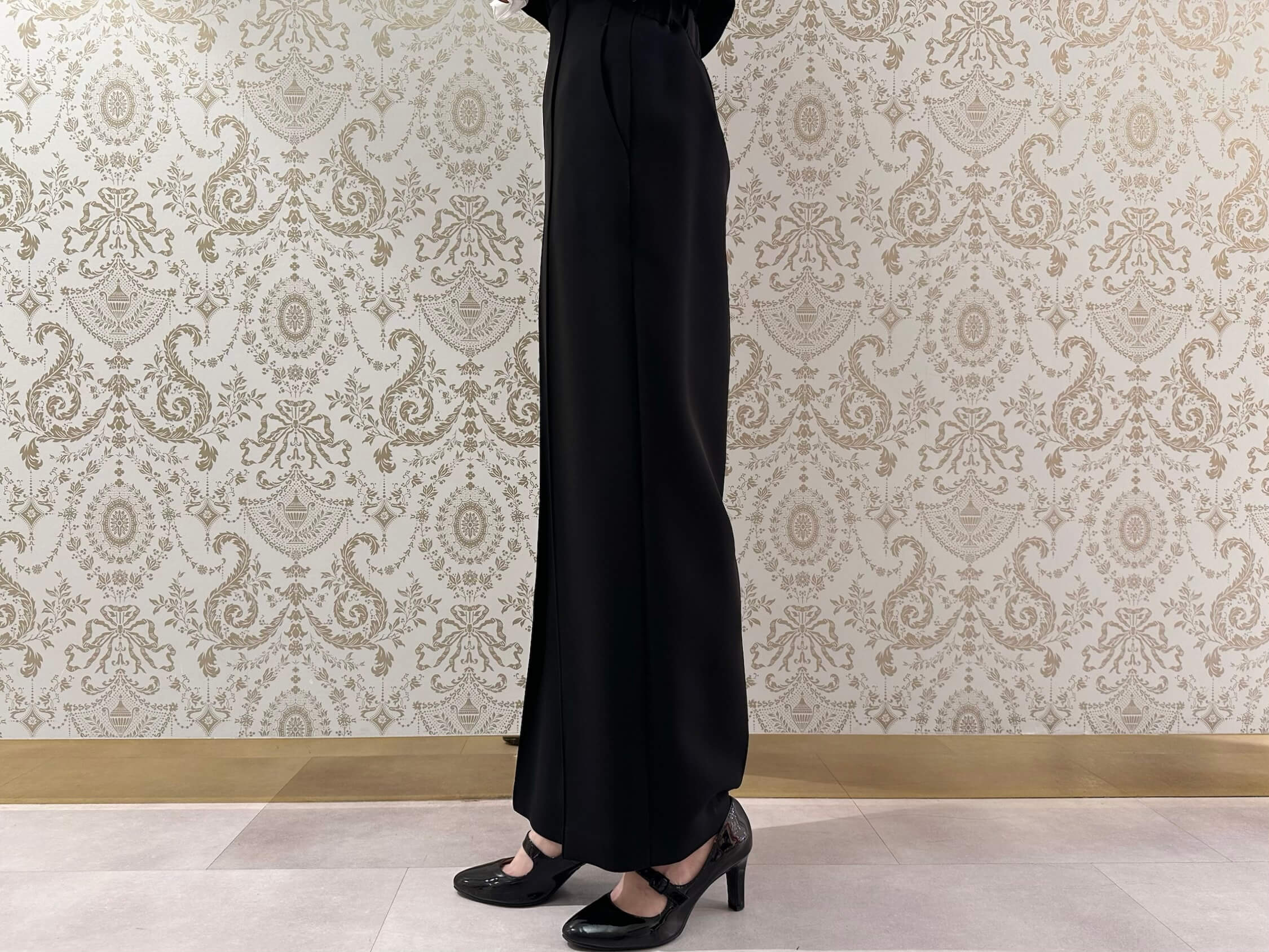 ハイウエストのワイドパンツはスタイルアップ効果抜群で上品な落ち感がエレガントな女性の雰囲気を演出します。