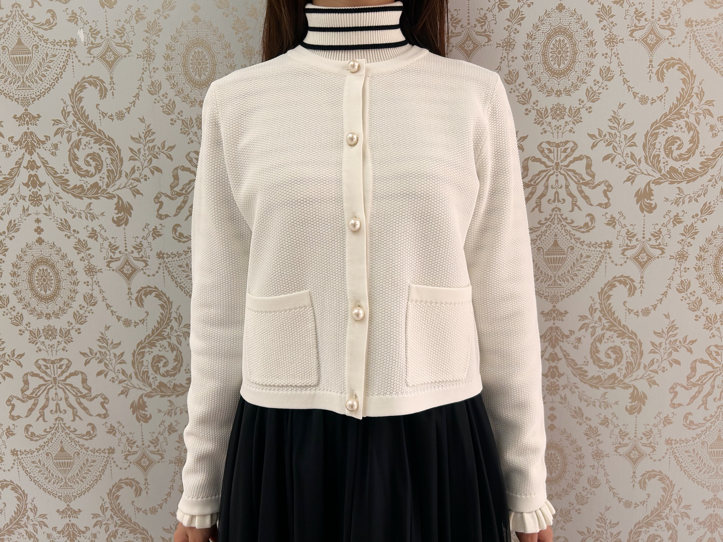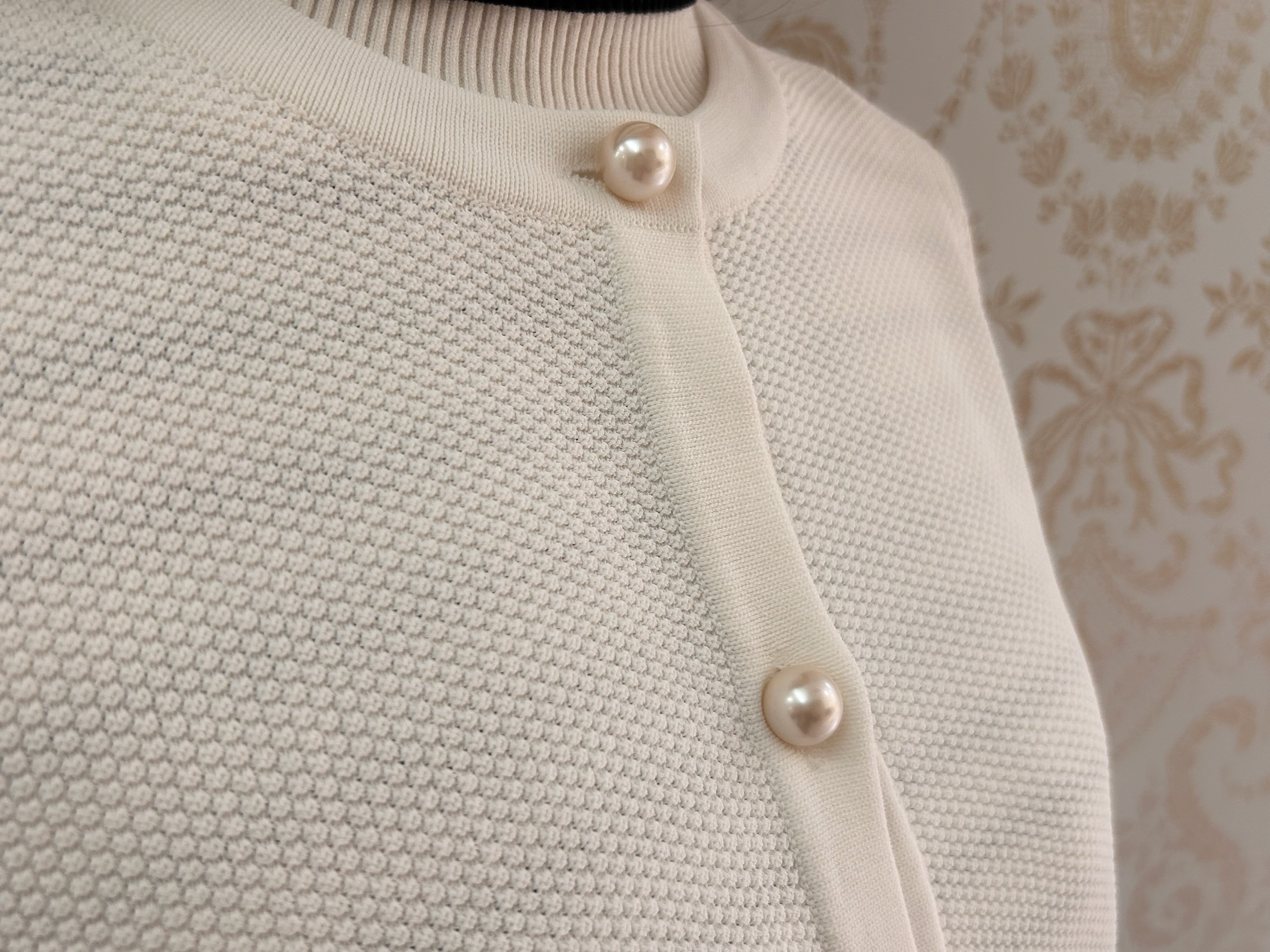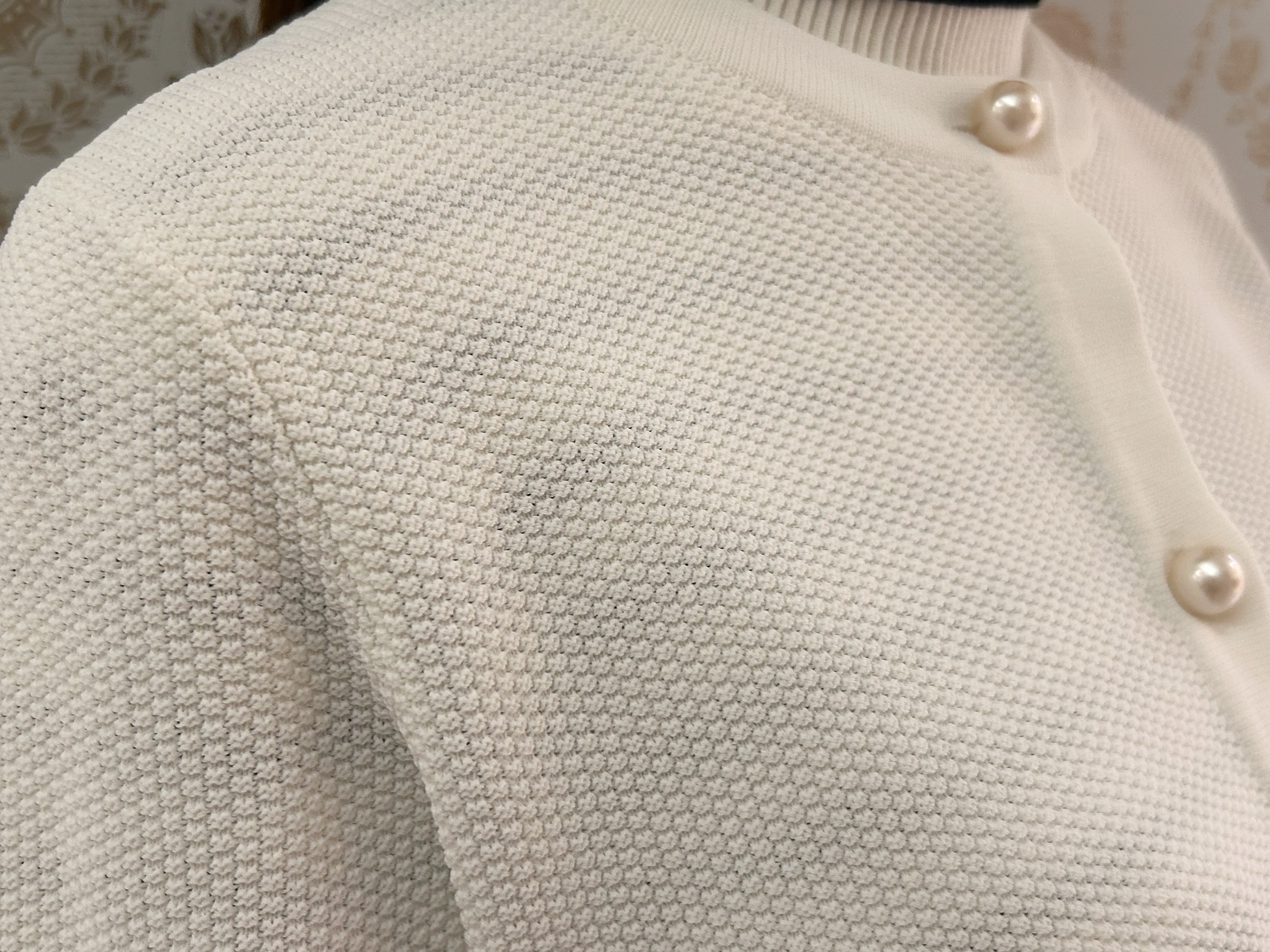 表情のある鹿子編み素材は、程よい厚みと立体感があり、シンプルながらもきちんと感を演出してくれる一枚。