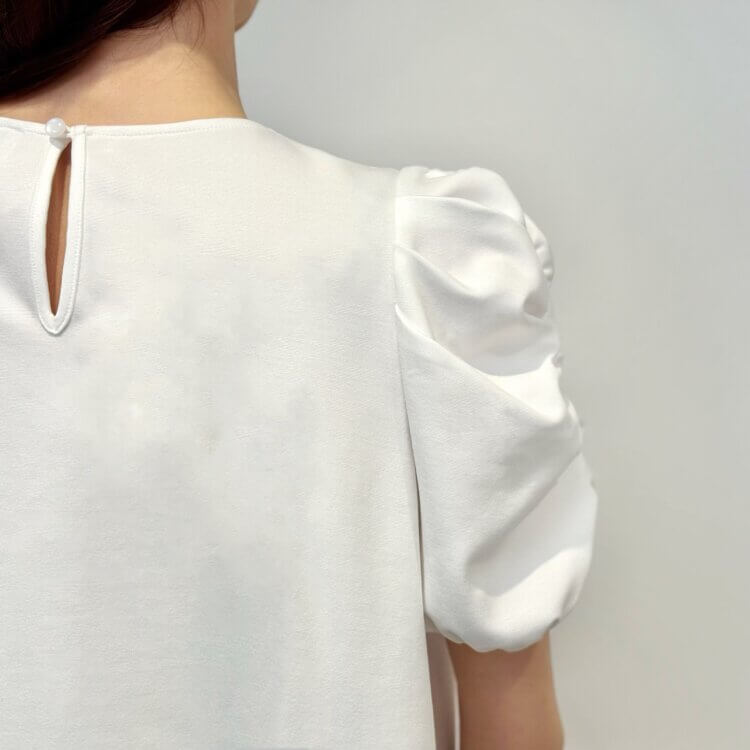 Aeのロゴ入りのシルバーのドットボタンがオールブラックコーデのアクセントになります。