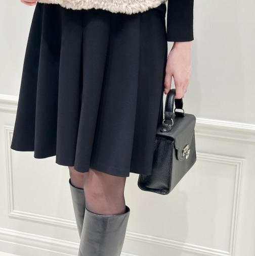 セットアップは単体で着用出来る着回し力がポイント。程よい厚みなので、季節を感じるトップスと合わせるとより素敵さがアップします。シンプルなスカートですが、フレアに広がるドラマティックなシルエットが特徴です。