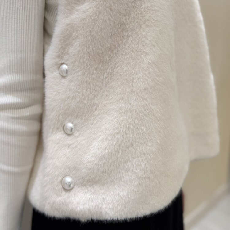 お袖がポイントのファーニット。肌触りのいいエコファーはつい触りたくなるほど。計算された細かなデザインなので、お袖部分のみ程よくボリュームを。実際に着用してみると落ち着いたボリューム感なので、ファーアイテムは気になるけど主張しすぎないかな?とお悩み中の方におすすめです。