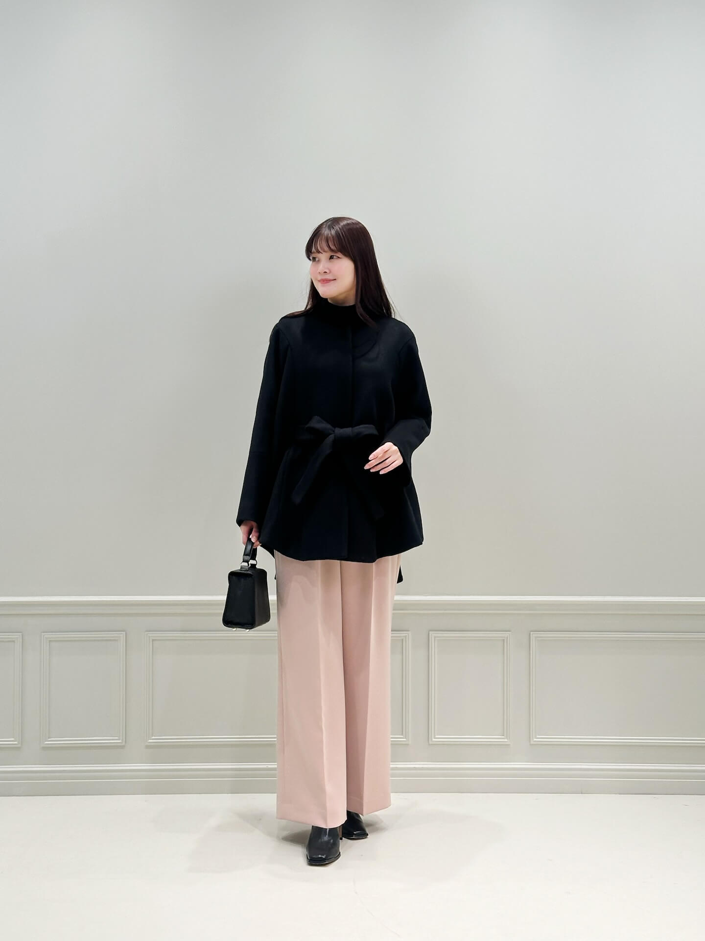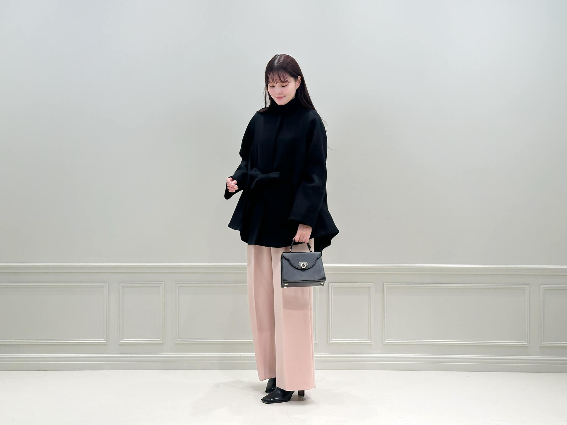 ブラックに映える差し色♡ピンクベージュで楽しむ冬のきれいめパンツスタイル