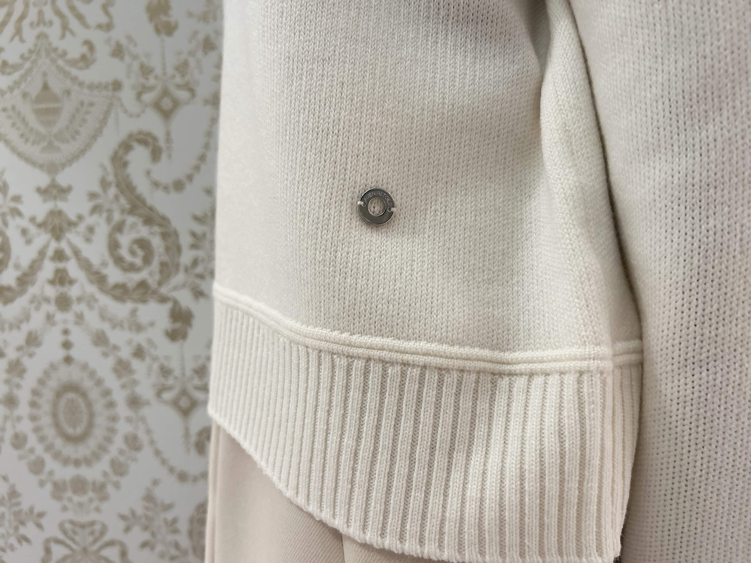 左裾あたりには、AVENIRETOILEオリジナルロゴ入りチャームが施されており、さりげないアクセントに。