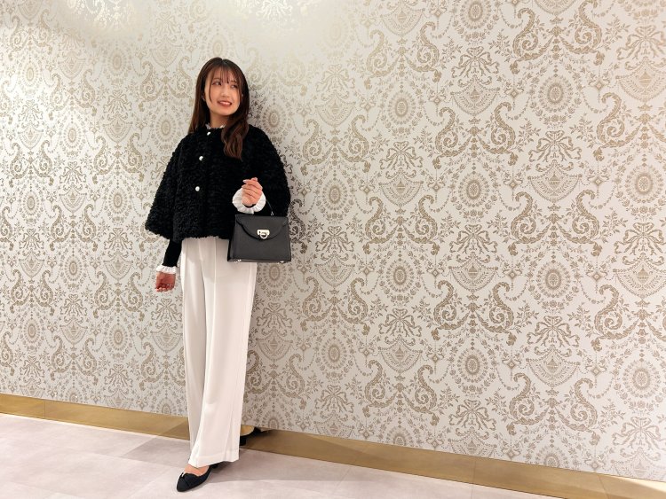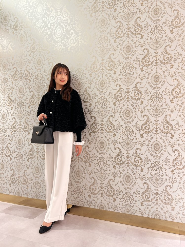 人気のふわふわショートコートはモノトーンで大人エレガントに着こなして♪@ジェイアール名古屋高島屋店