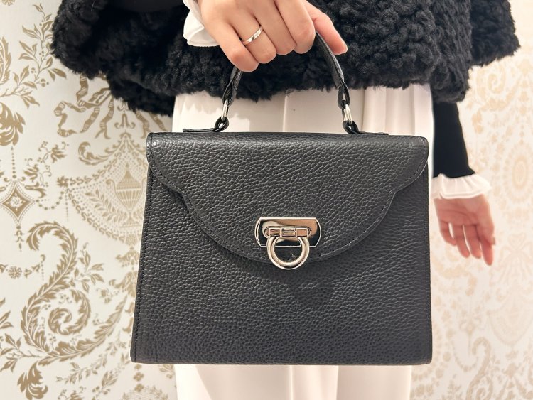 コーディネートの仕上げには、ブラックのスクエアバックを合わせてモノトーンコーデの完成です。
