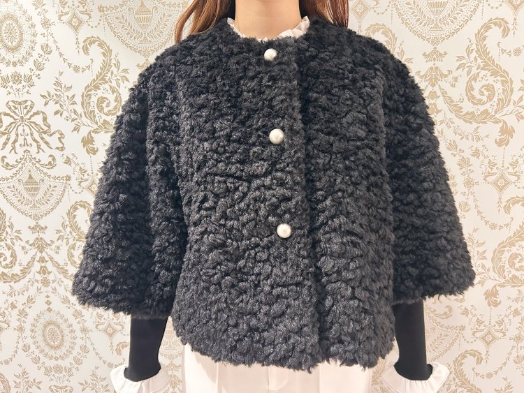 ふわふわとした生地感が暖かみのある印象を与えてくれるカールファーコート。