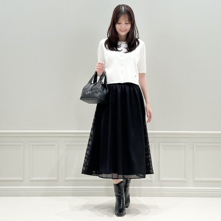 ①ピンタック&フレアシルエットで美脚効果抜群