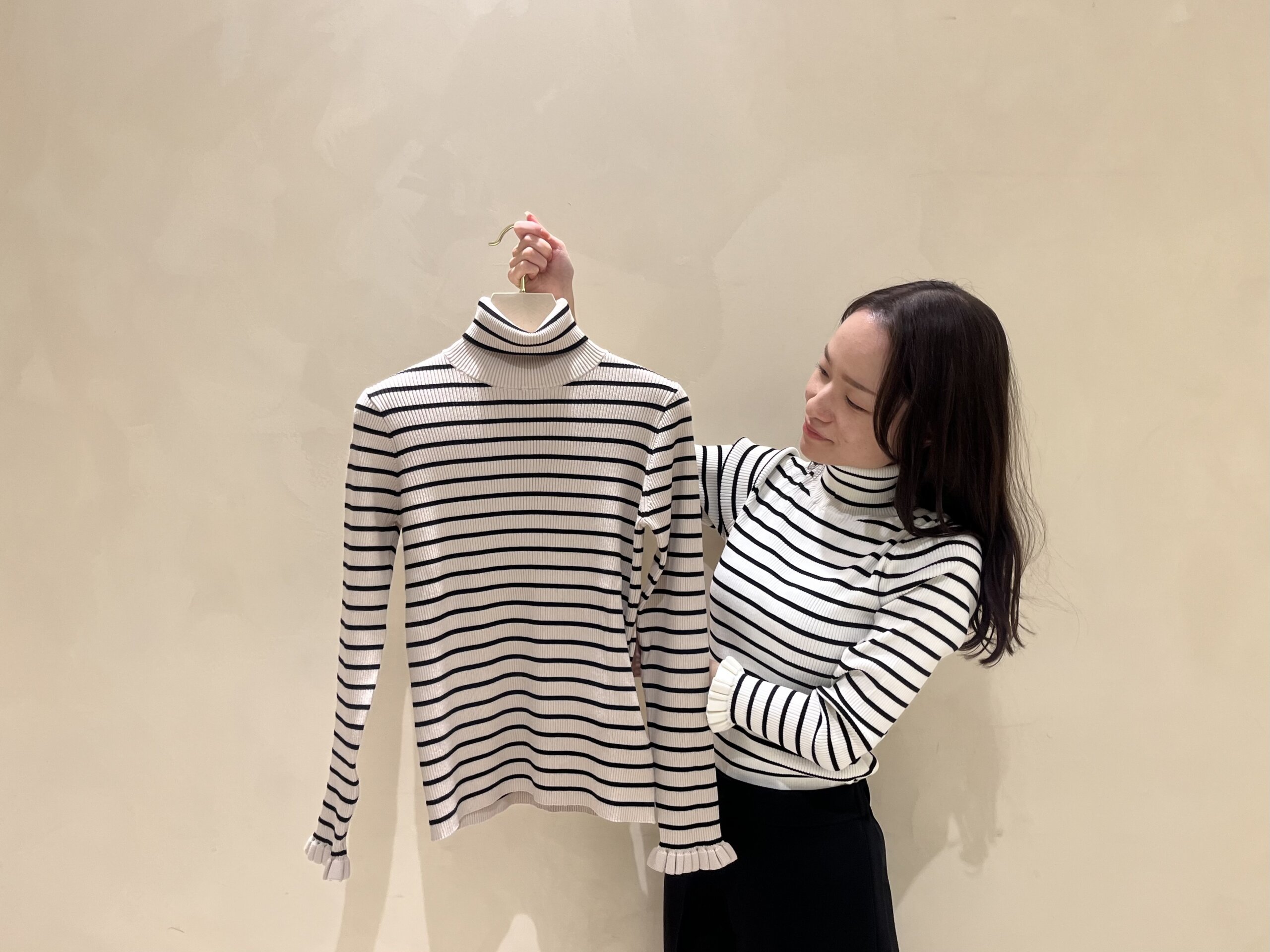 今週のCHECKアイテム!/ フリルボーダーリブタートルネックニットプルオーバー@阪急うめだ本店