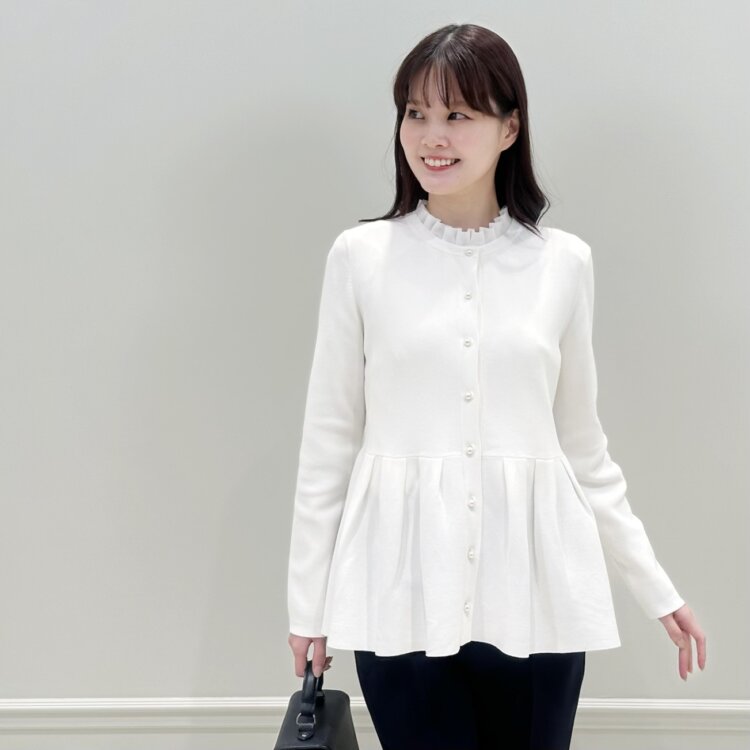 まずはホワイト!先ほどのブラックと合わせたコーディネートとは、また違った上品さを見せてくれるカラーです。
