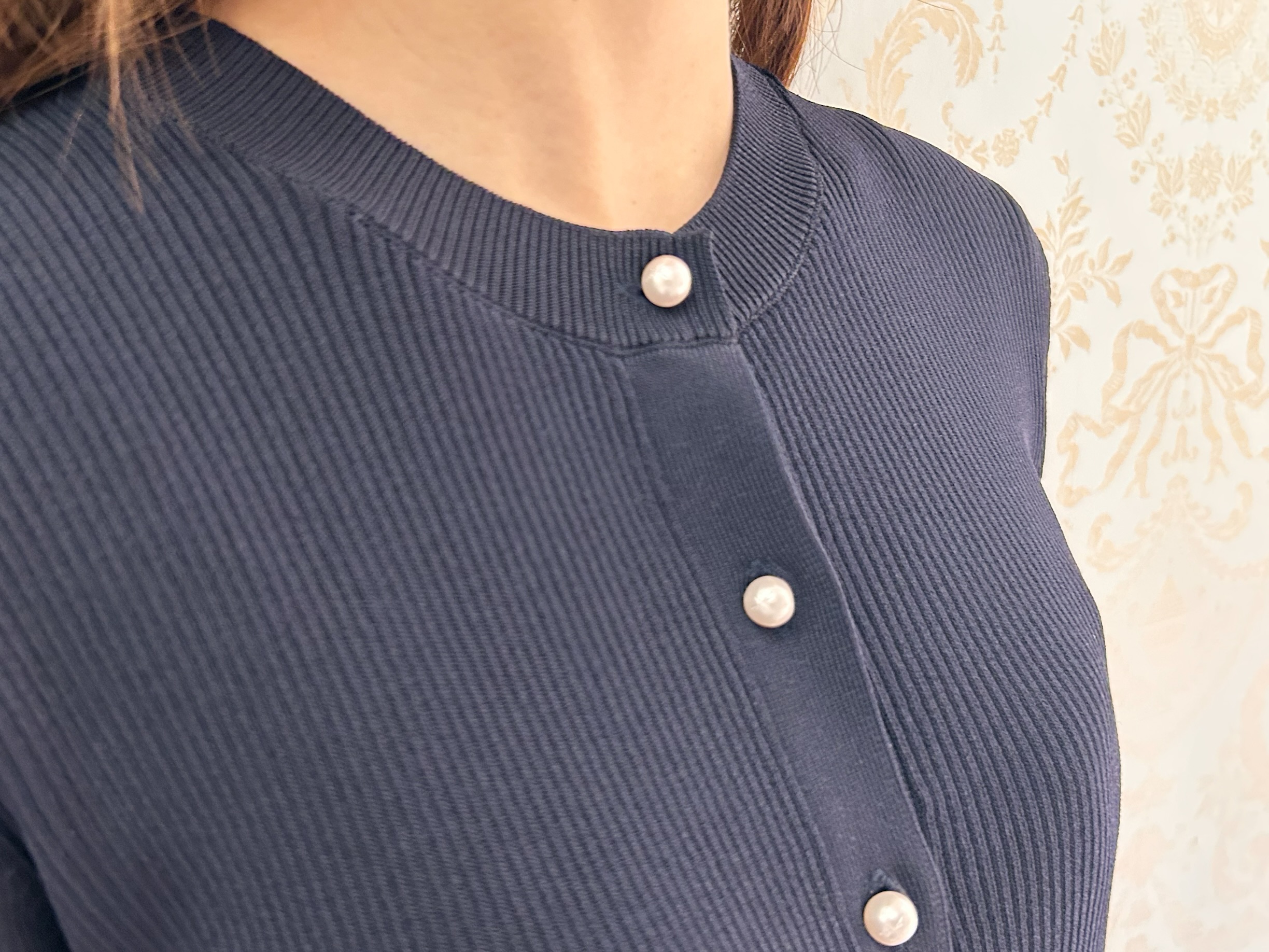 パールボタンリブ切替ペプラムニット ¥ 34,100
