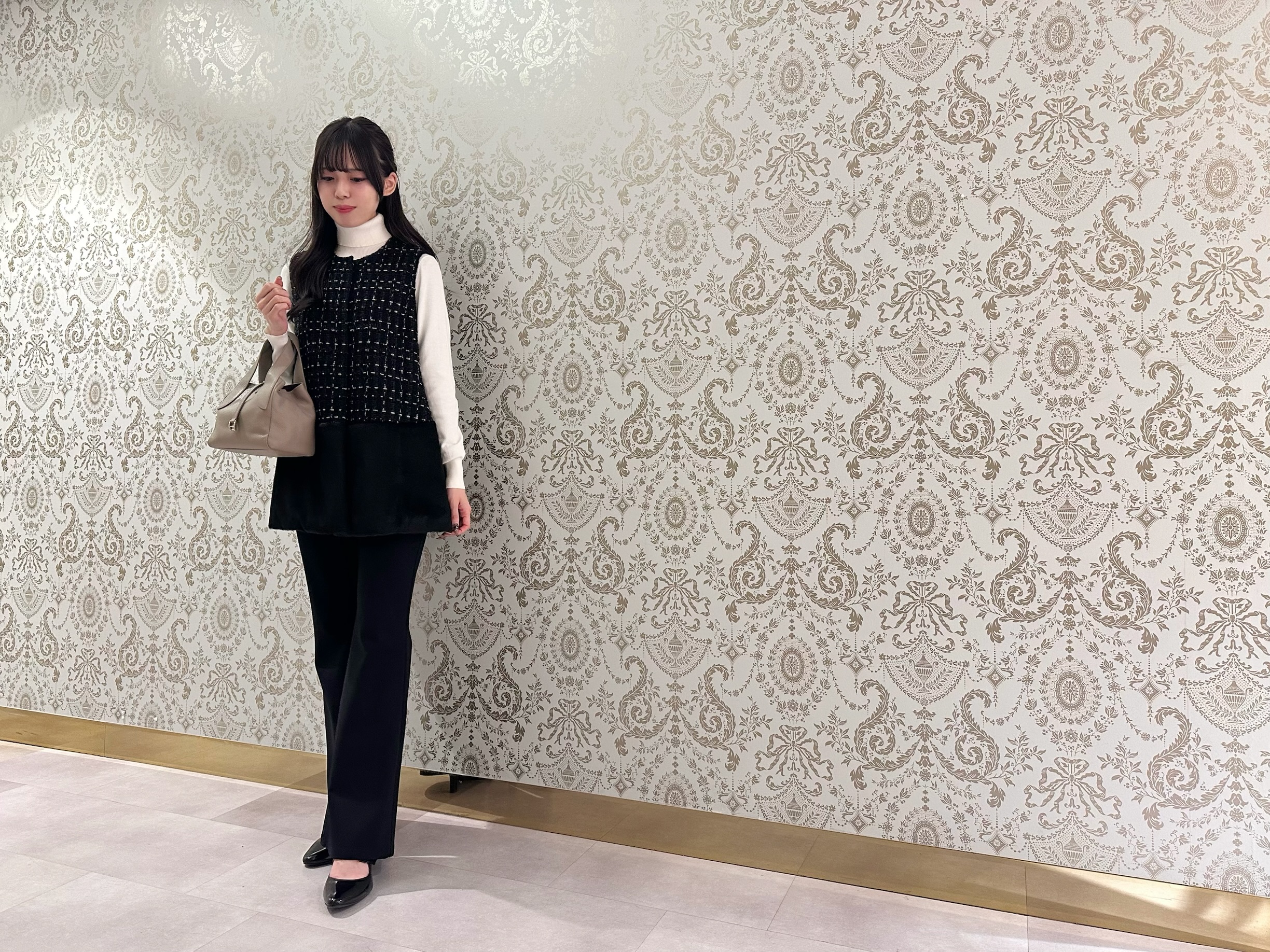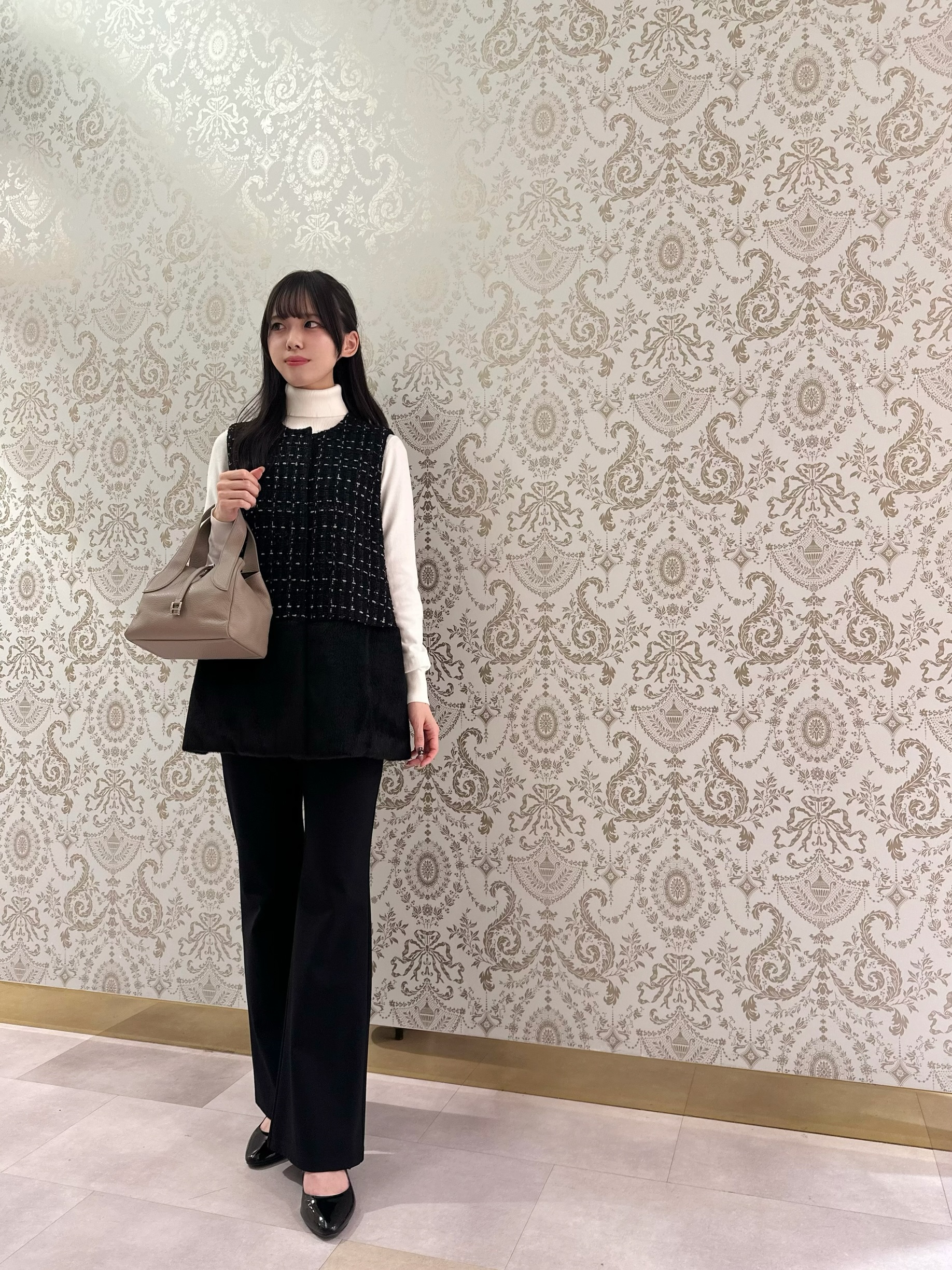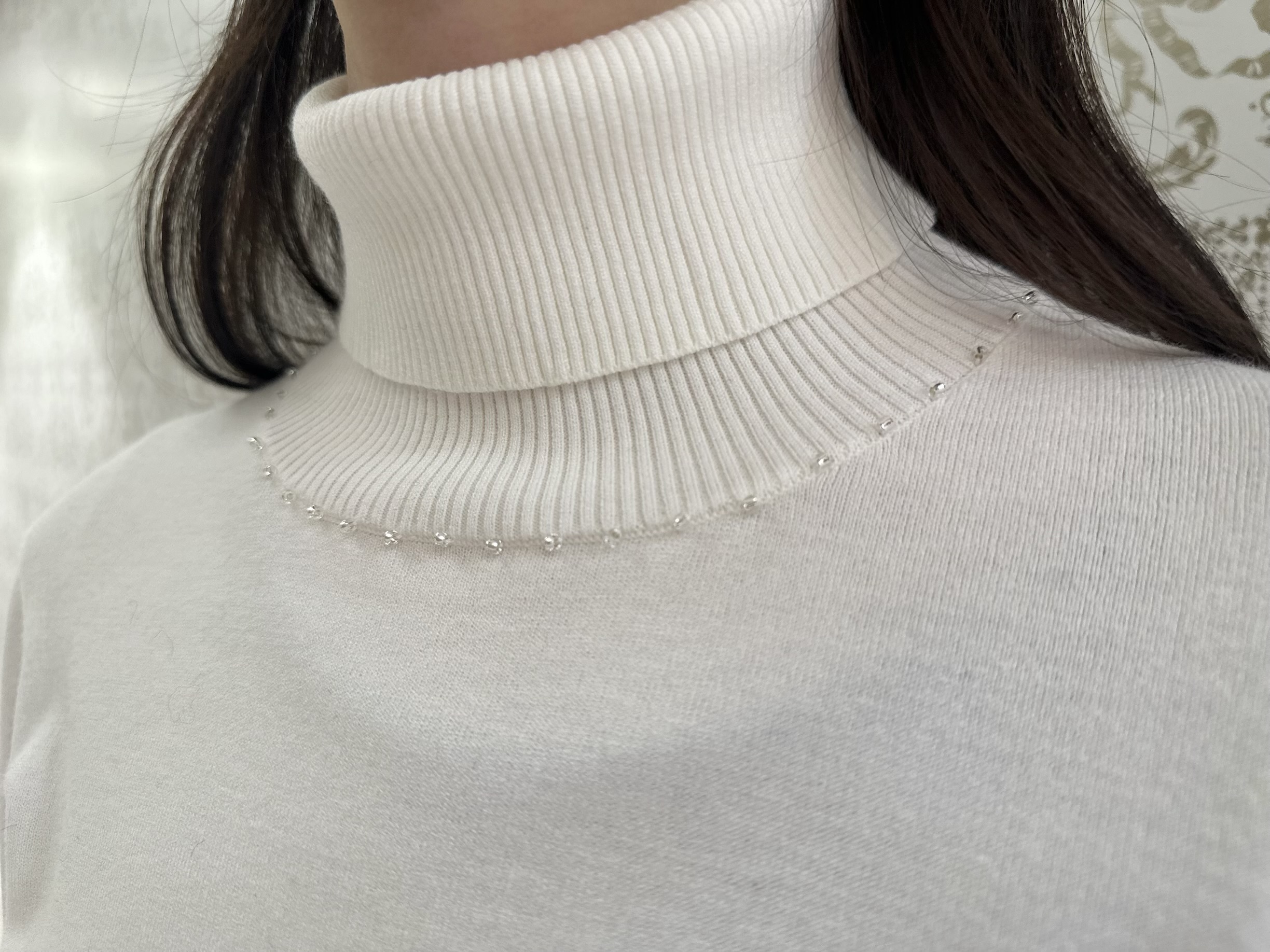 インナーにはオフホワイトのビジュータートルネックを合わせました。