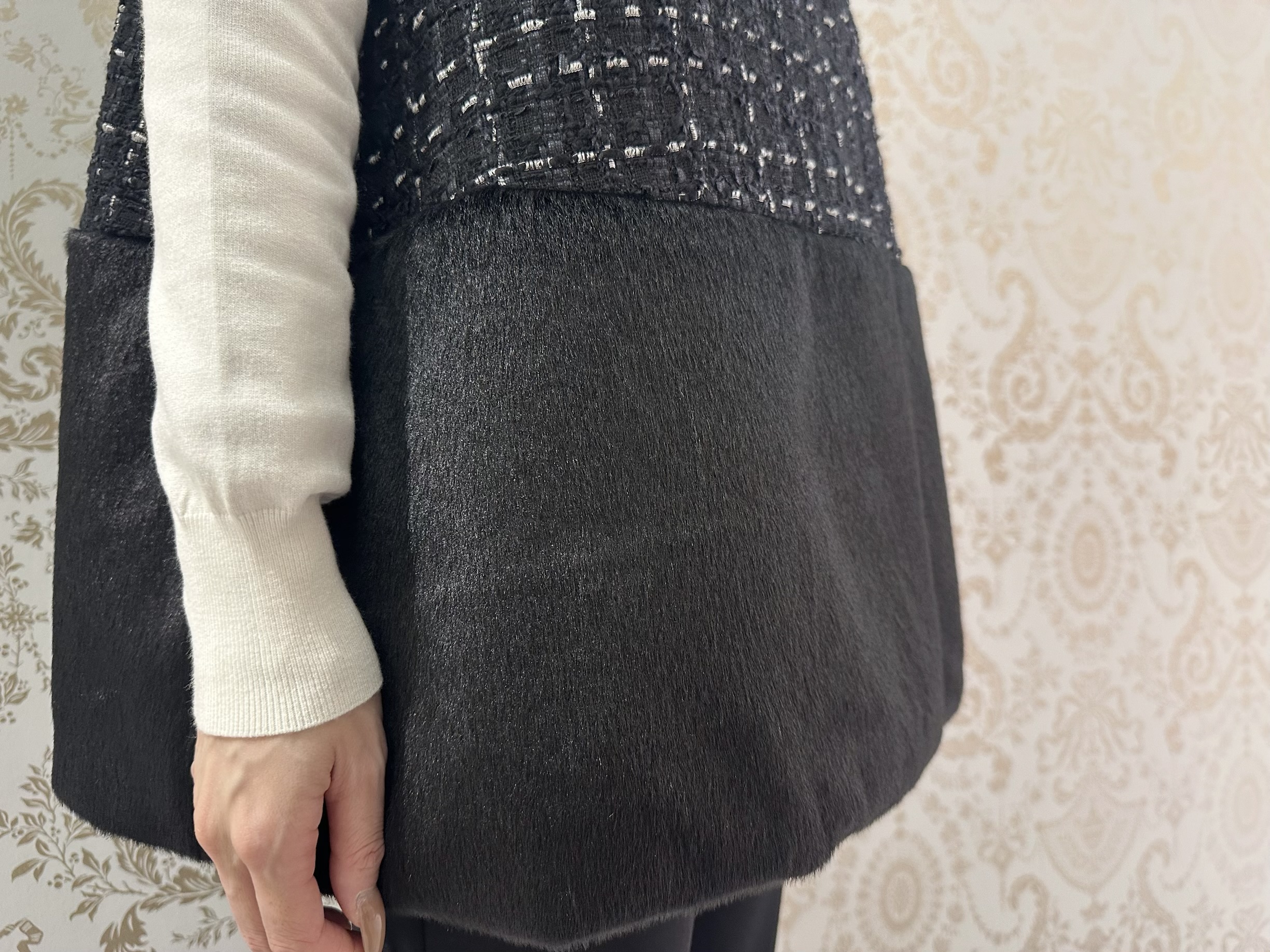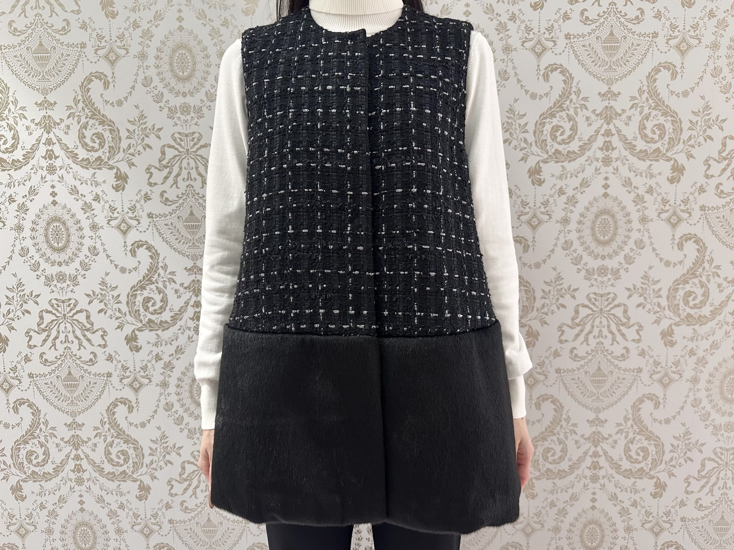 ファンシーツイードファー切替ジレ ¥78,100