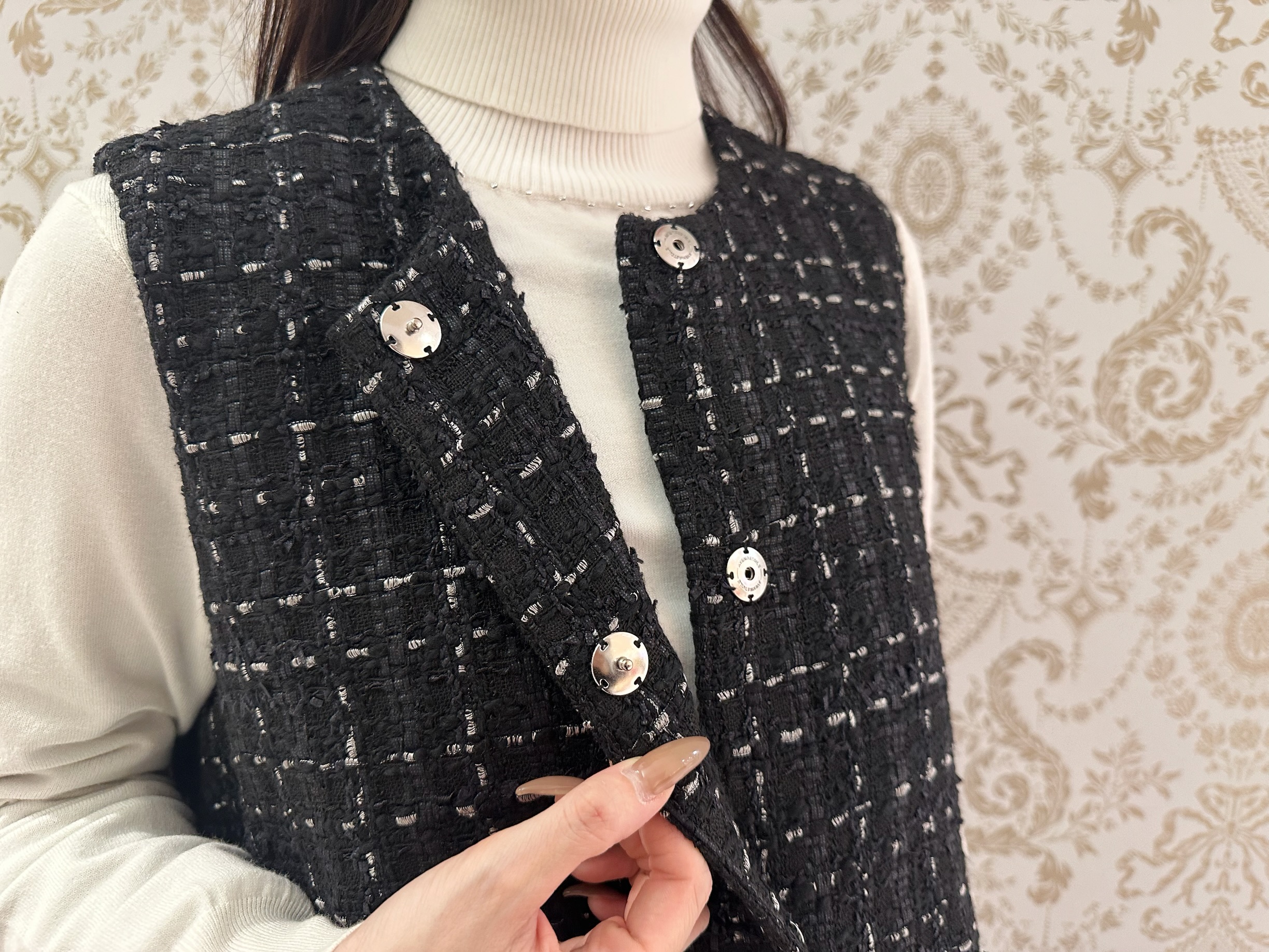 シーズンムード高まる冬らしいツイード素材が散在感抜群です。