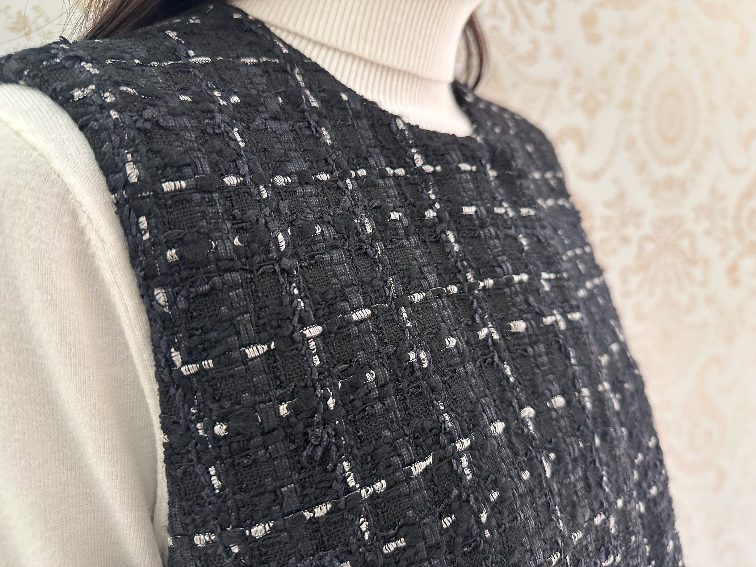 オリジナルのツイード素材を使用しており、織りが作る立体的な表情にうっとり♪