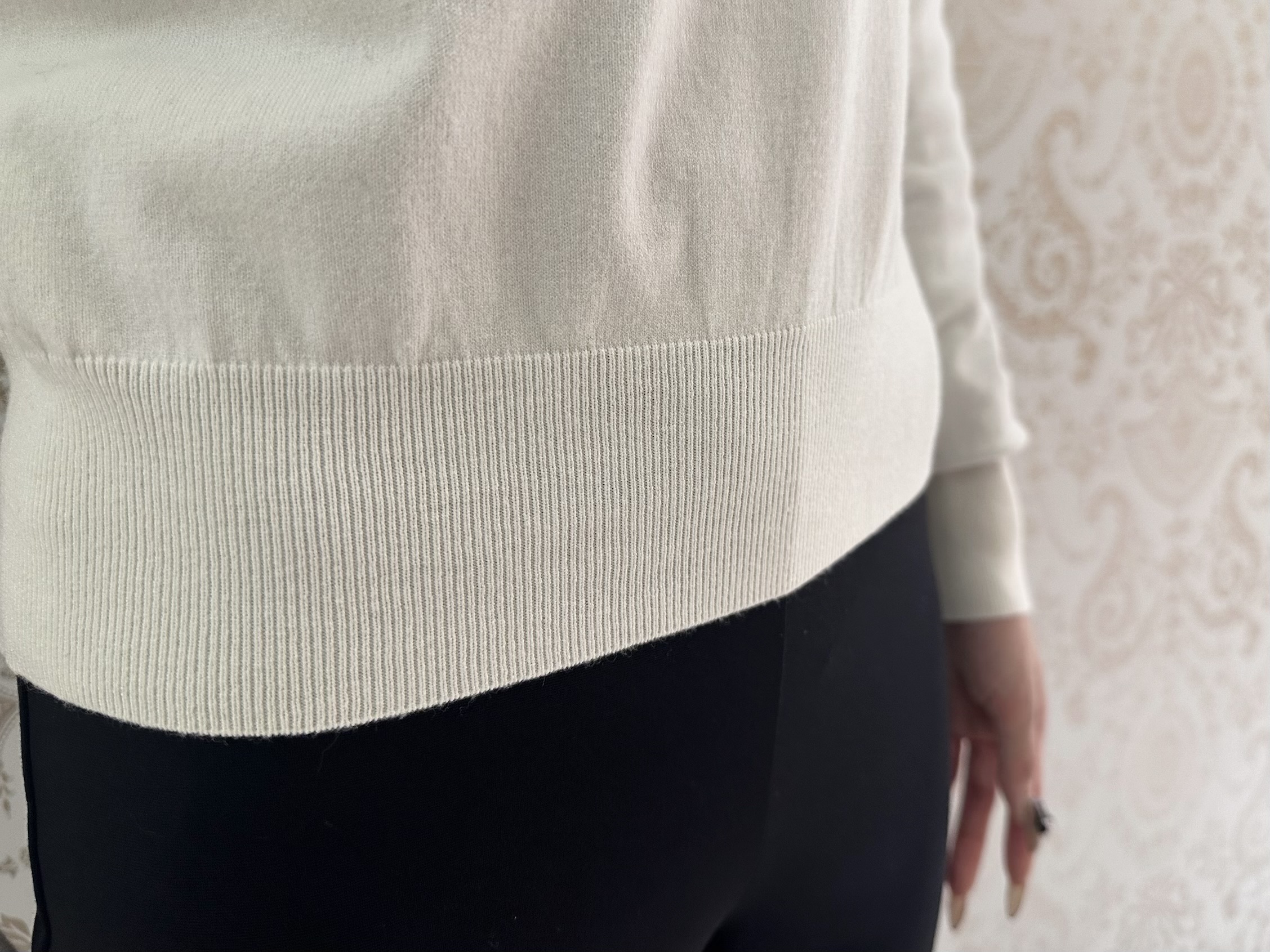 淡いベージュが光を柔らかく拾い、スタイリングに清潔感と上質なニュアンスを添えます。