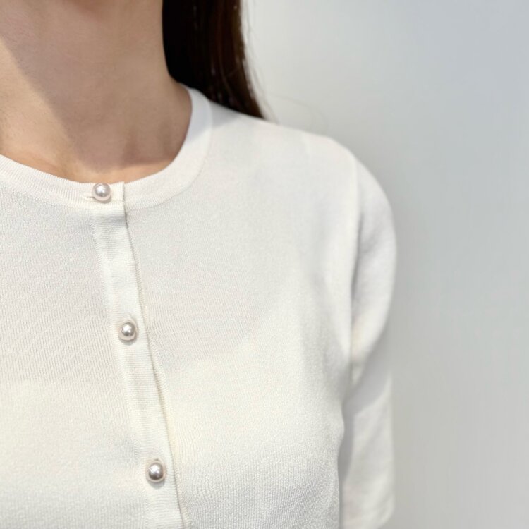 直線的なバーに整然と並ぶ5粒のパールが、シンプルでありながらもしっかりと存在感を放ち、装いに華やかさを添えてくれるデザイン。