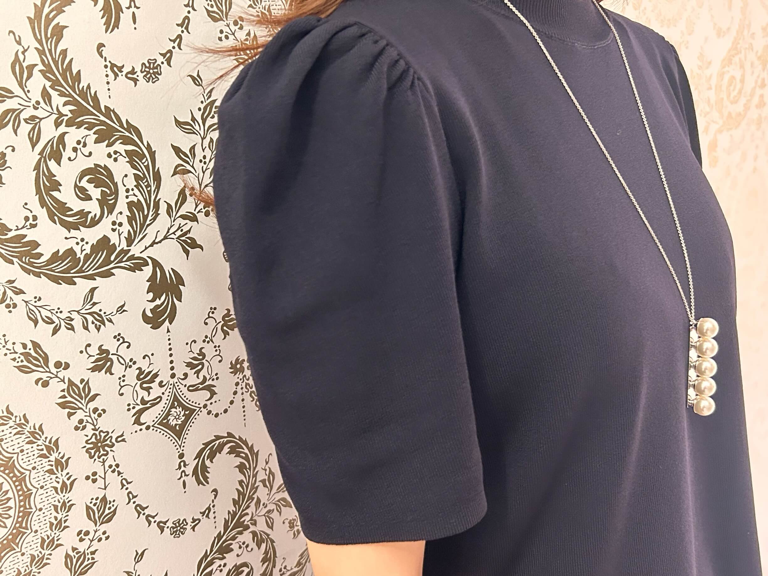 二の腕をさりげなくカバーしてくれる五分袖のパフスリーブは、一枚でも安心感があり、季節の変わり目にも活躍。