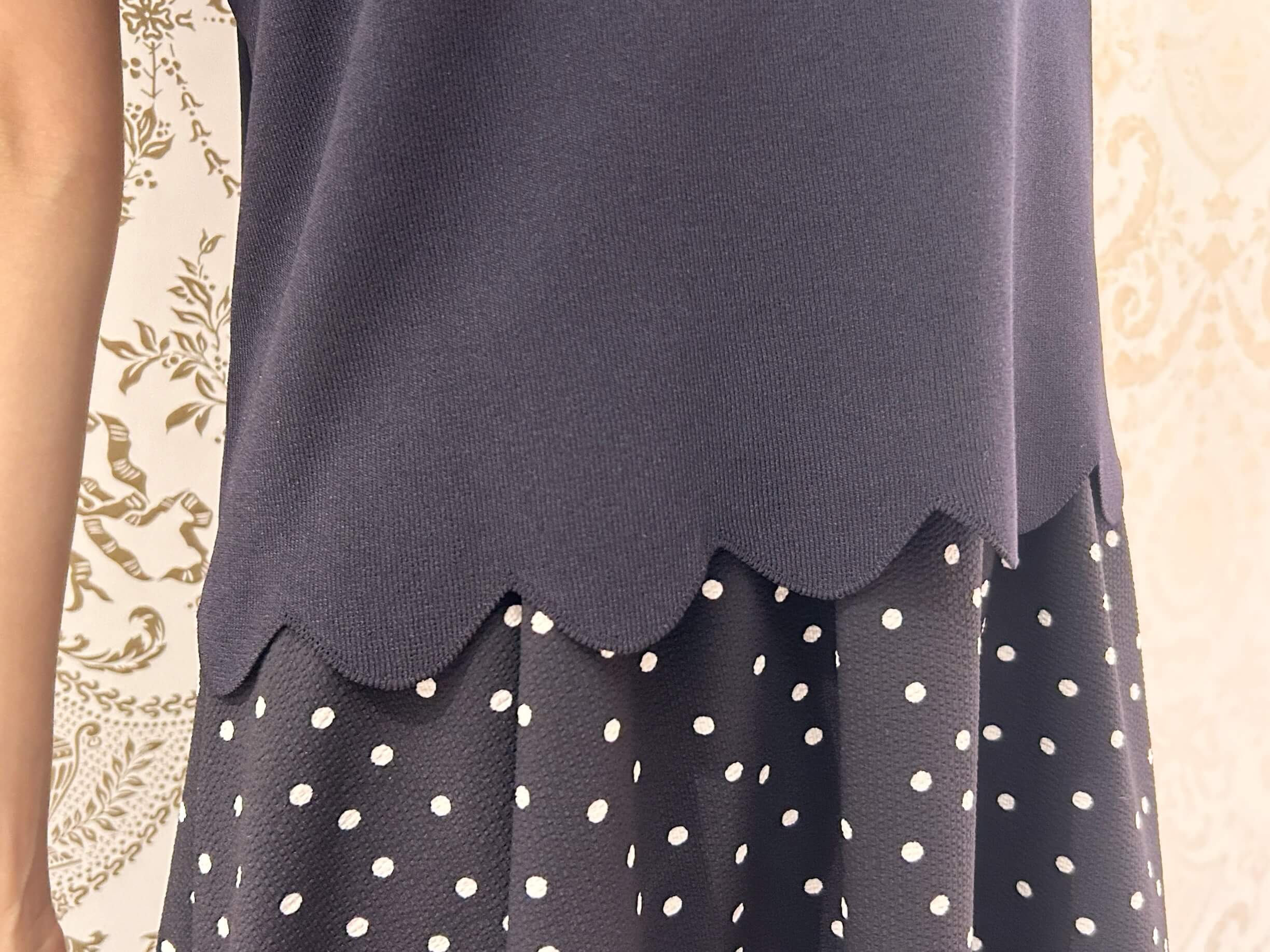 トップスは、裾のスカラップデザインが目を惹く一枚。