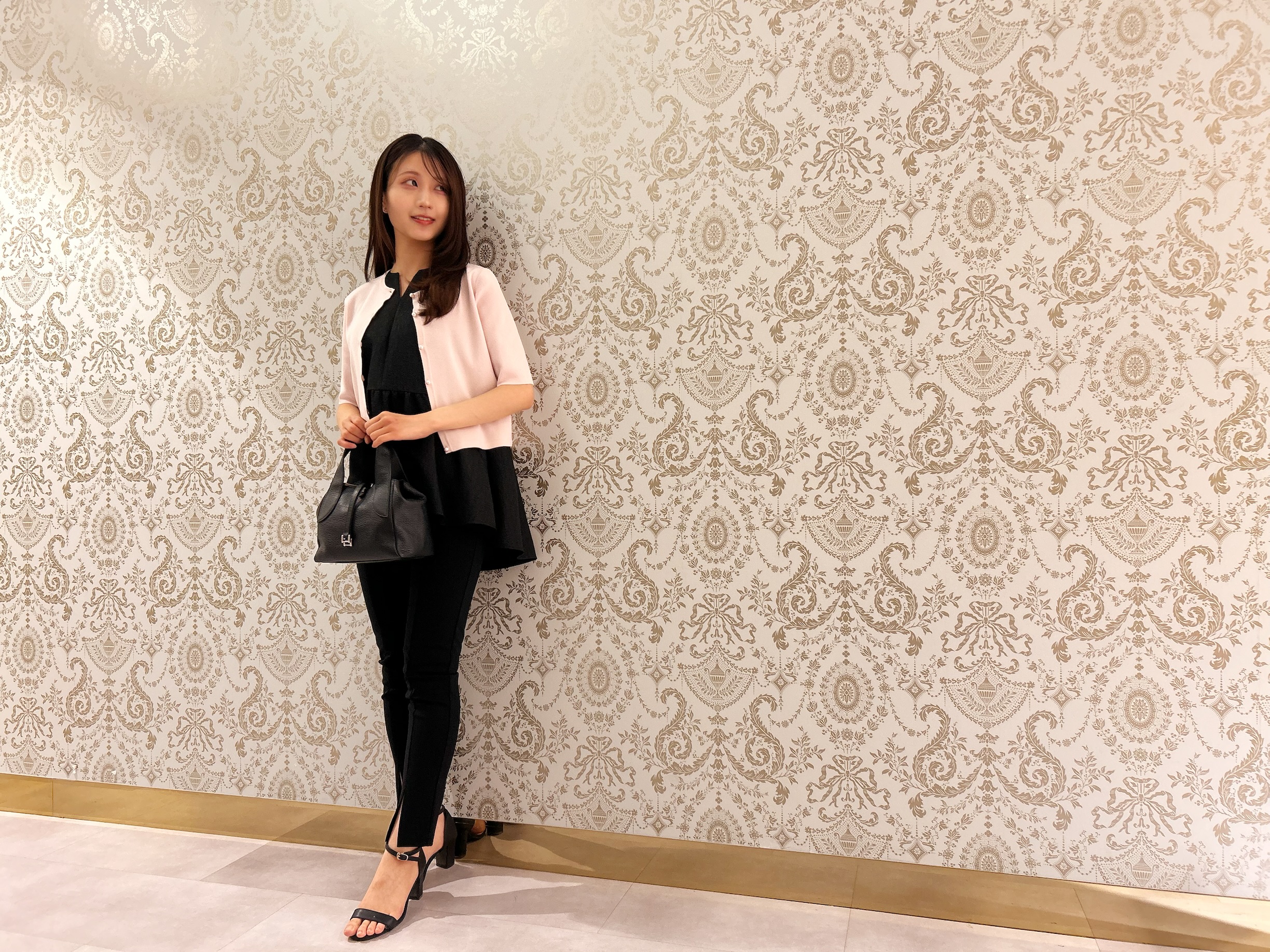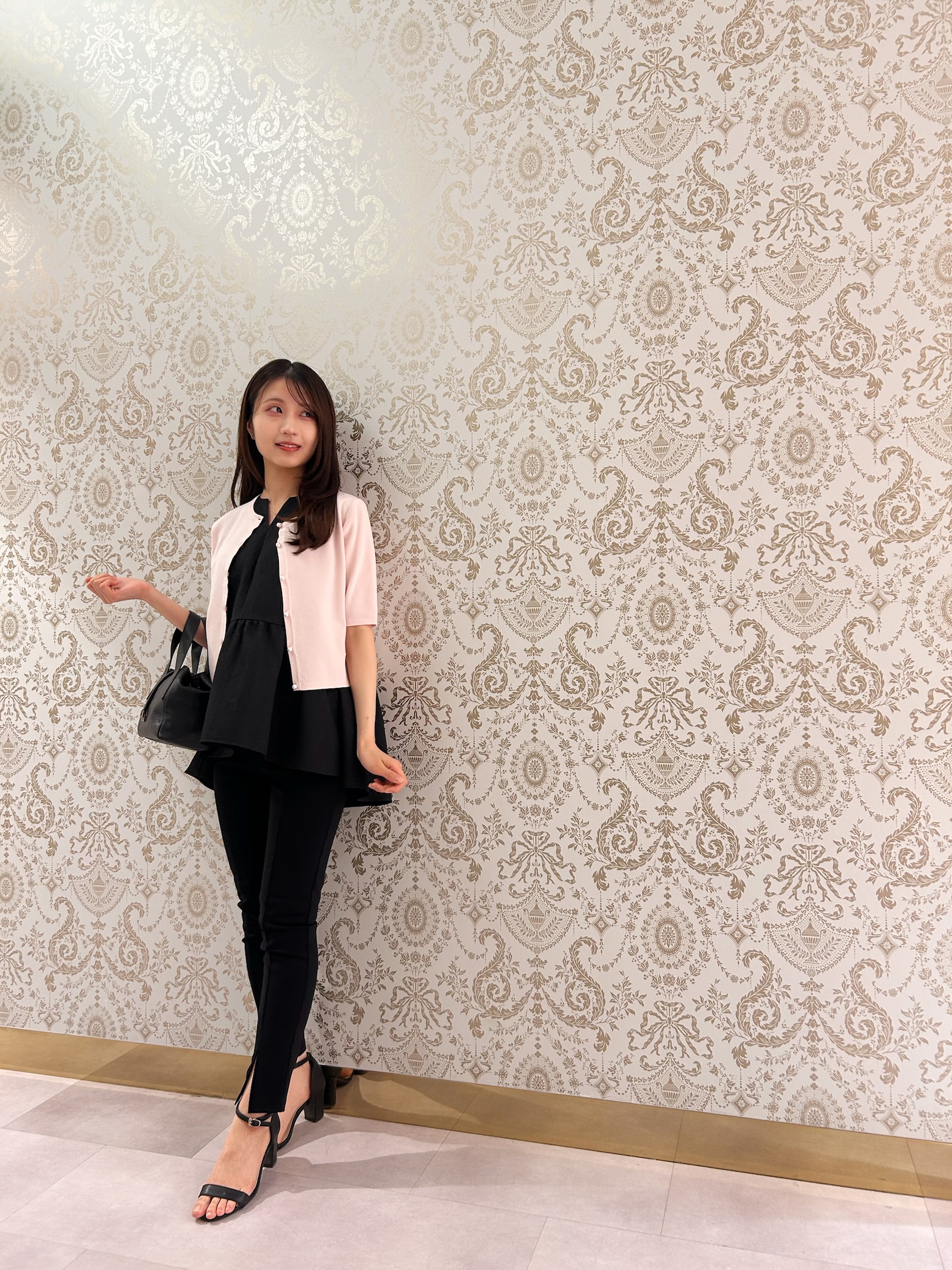 春色ピンクを添えた、華やぎペプラムスタイル@ジェイアール名古屋高島屋店