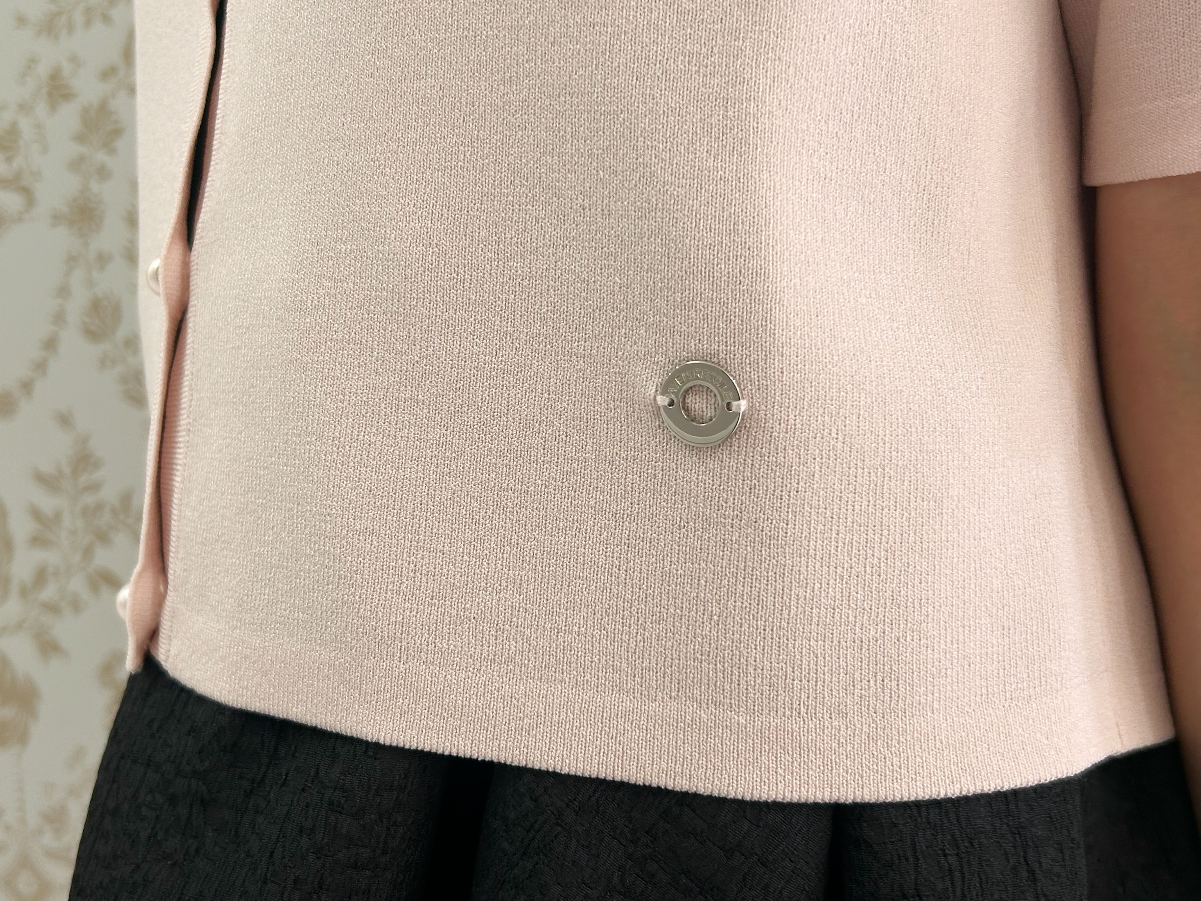 フロントのパールボタンにはさりげなくアベニールエトワールのロゴが刻印されており、細部まで上品さを感じていただけます。