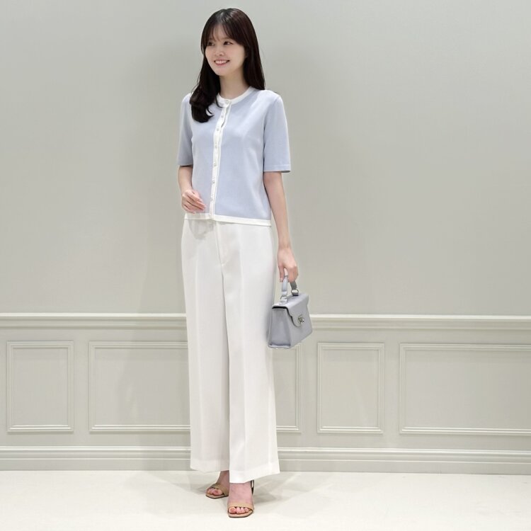 細めのボーダーとリブが大人の女性らしく、シンプルながらも華やかな印象へと導きます。