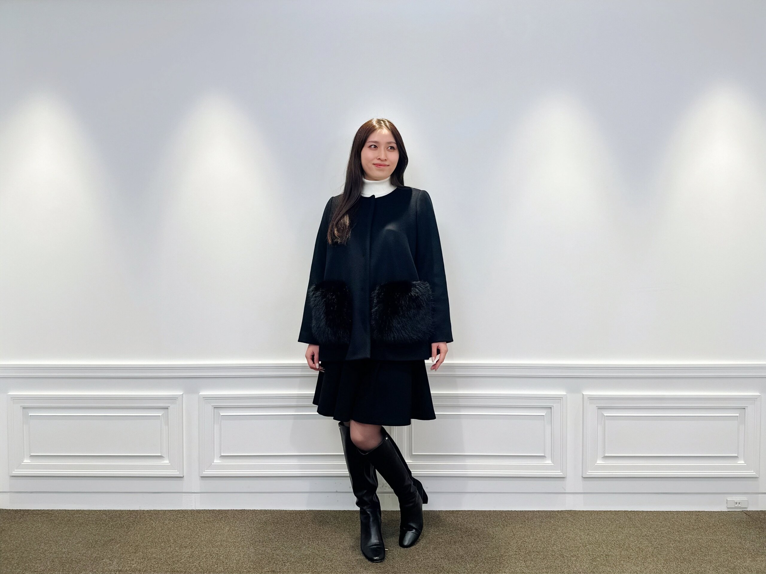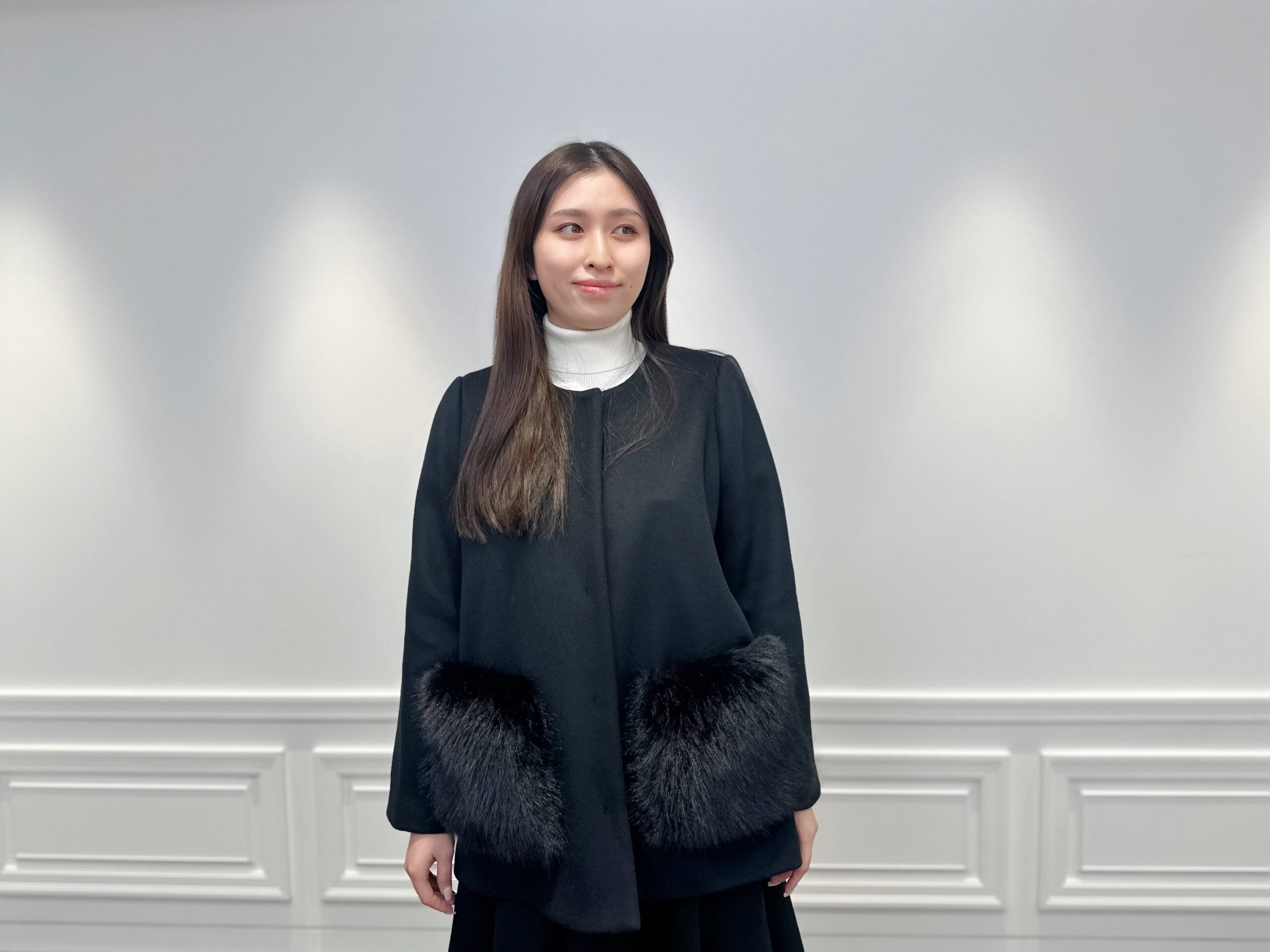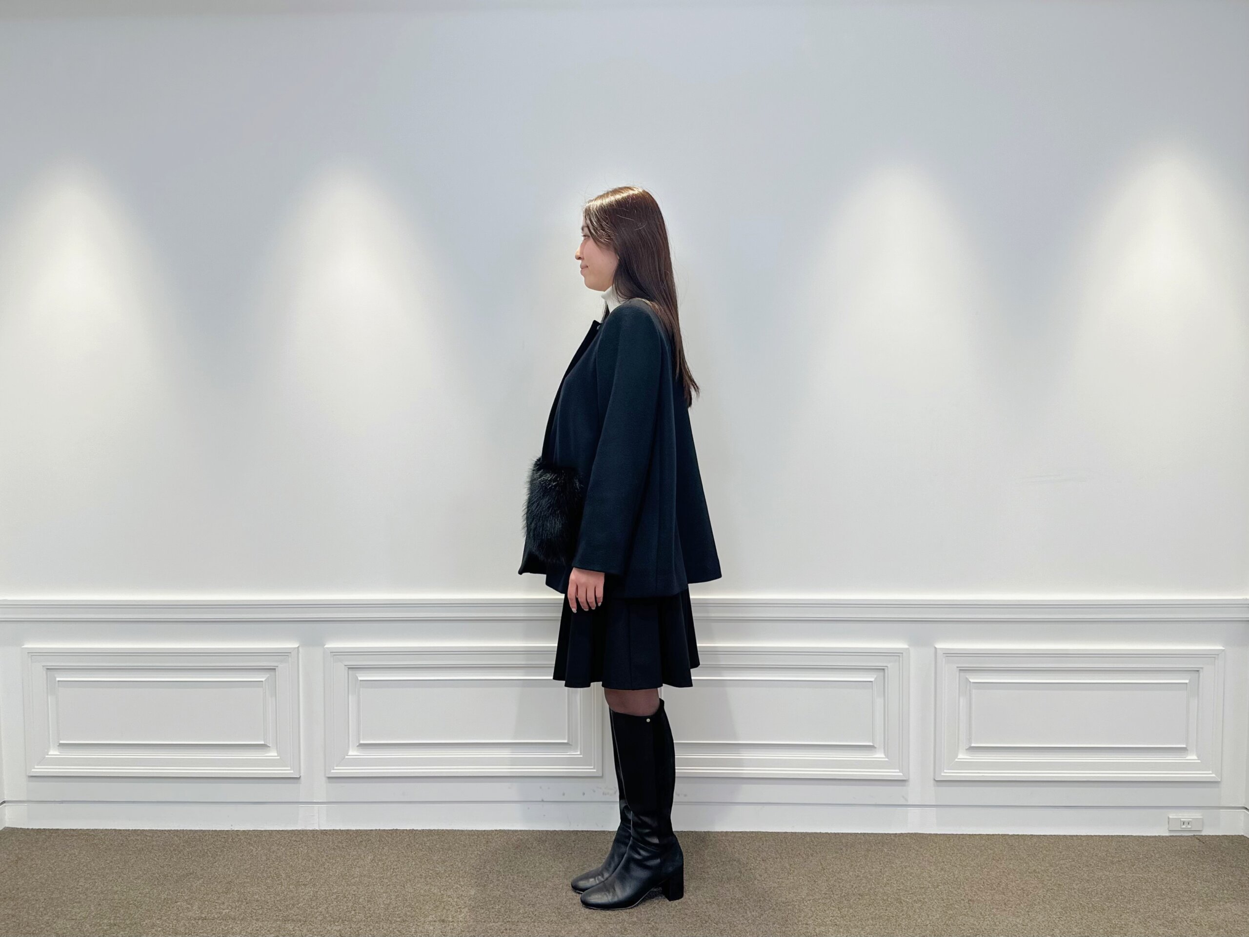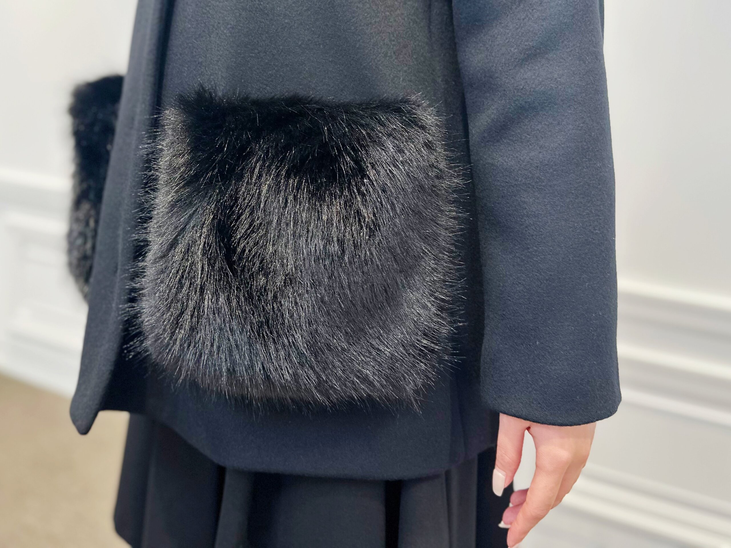 纏うだけで品格アップ。ファーポケットが主役の冬映えブラックコーデ