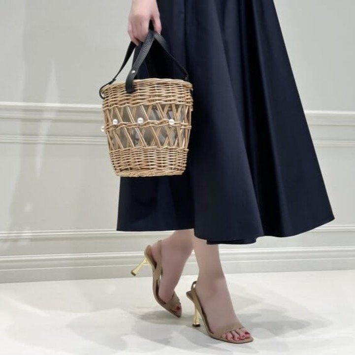 ウエストに施された華奢なリボンは、ウエスト周りを調整しやすく、お好みのシルエットにできるので小柄さんでも大きく見えすぎません。