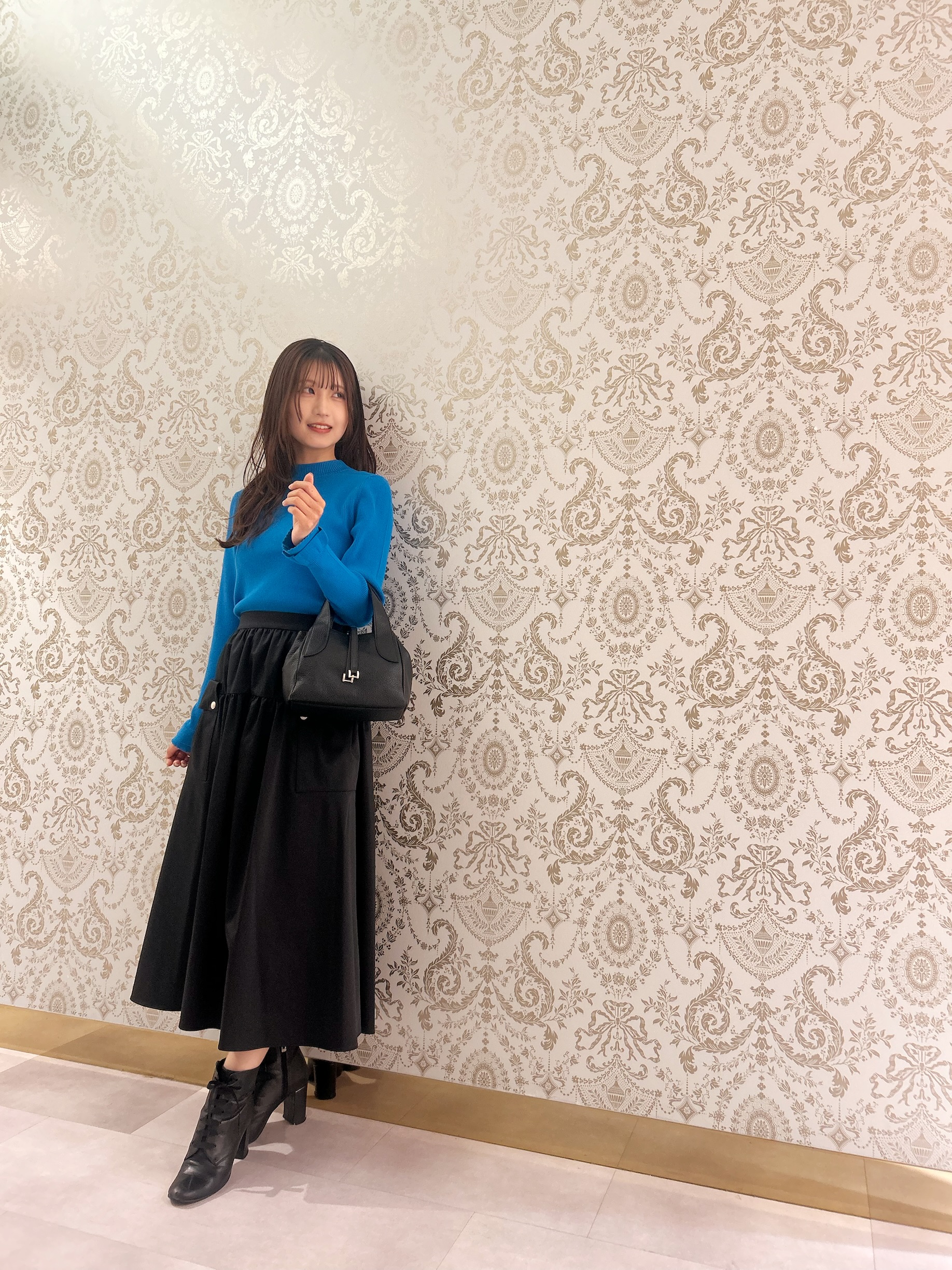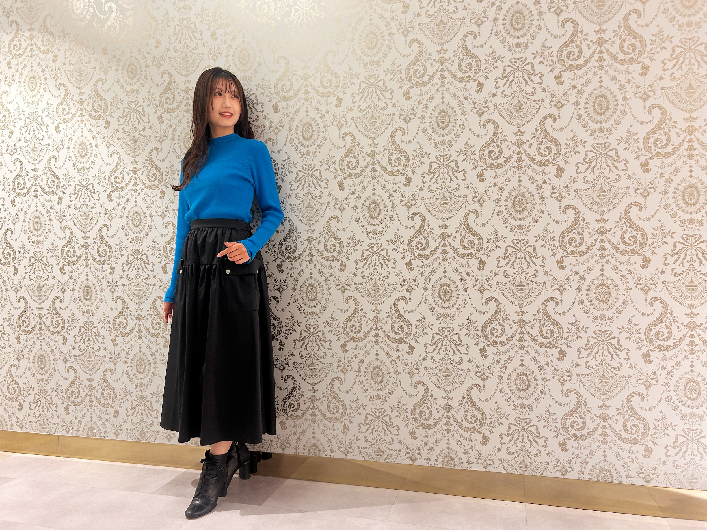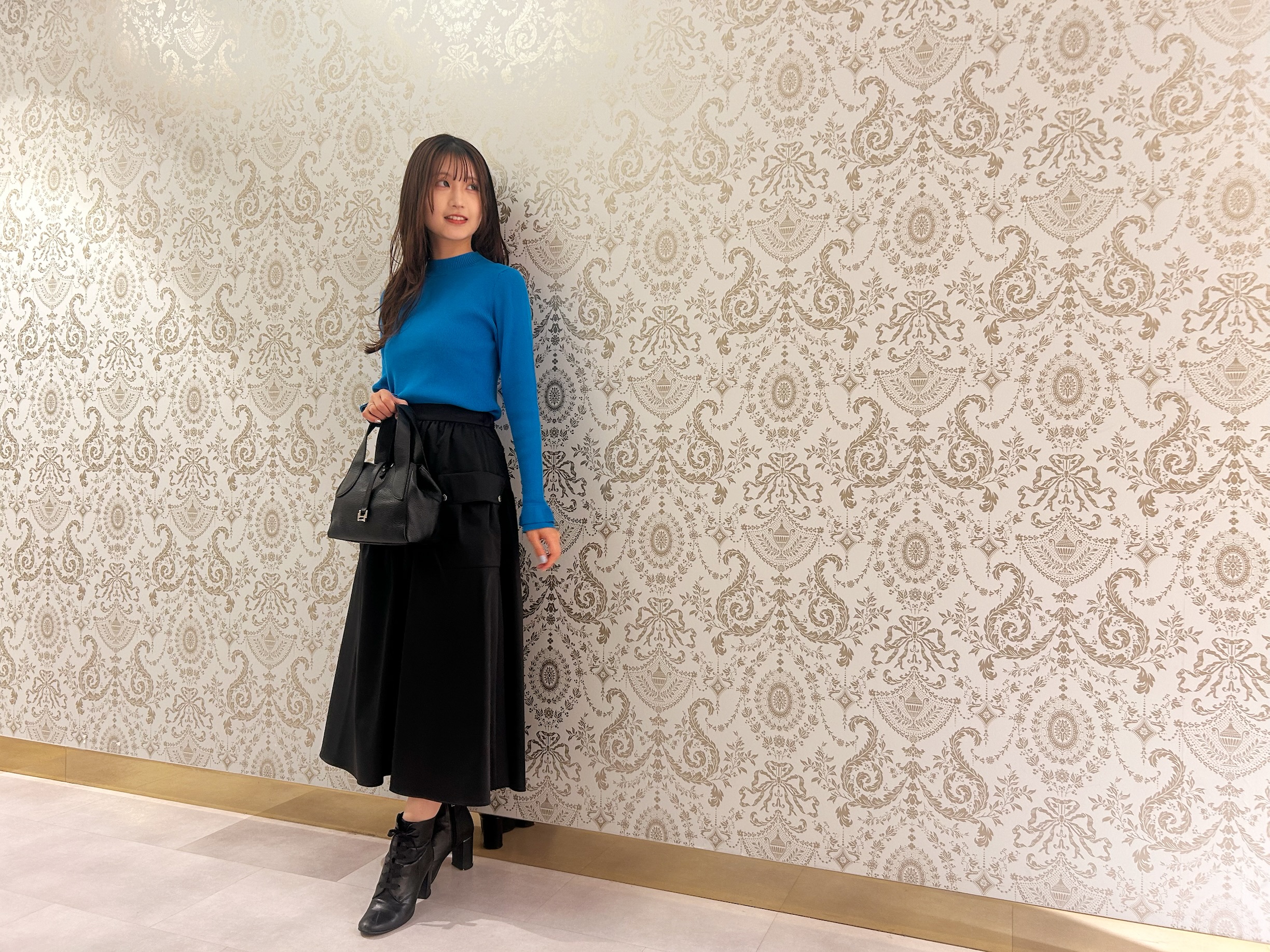 鮮やかブルーニットを主役に!ちょっぴりモードな秋冬コーデ@ジェイアール名古屋高島屋店