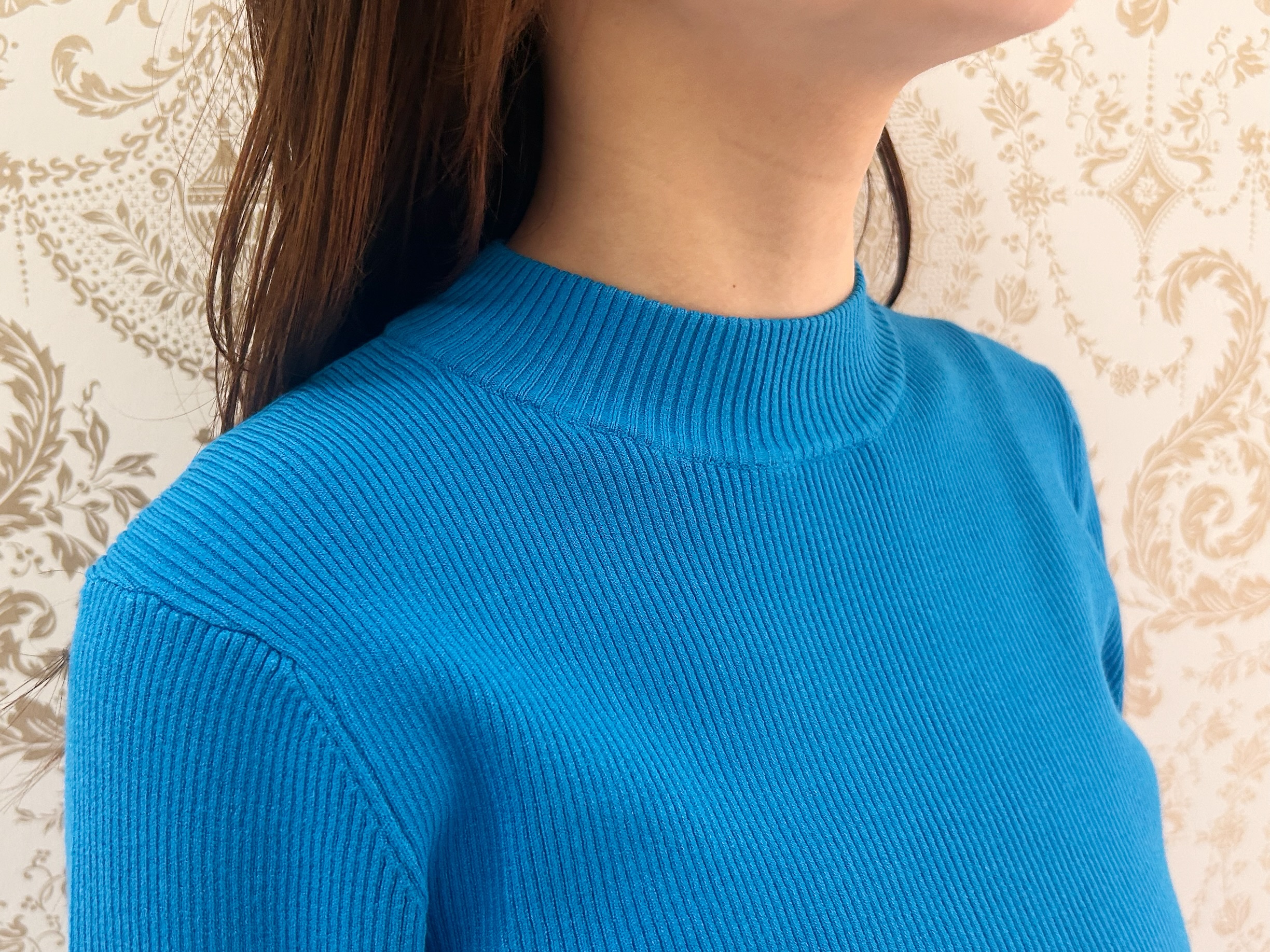 秋冬コーデの差し色にぴったりなぱっと明るく鮮やかなブルーニット!
